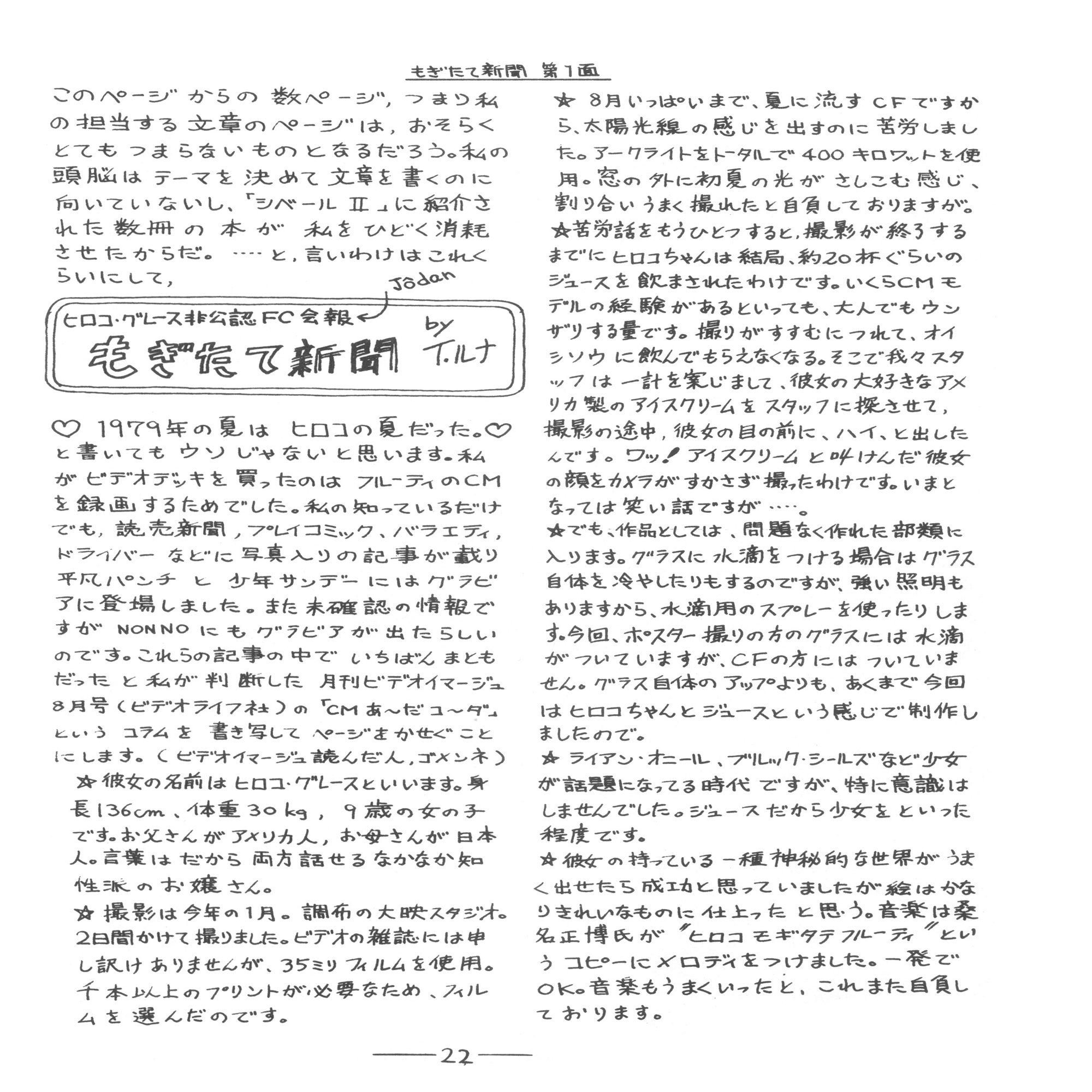その後、彼らは1980年12月頃に、当初はJōdanだったはずのヒロコ・グレースファンクラブを本当に設立。翌年4月には、ミニ会報『リトル・レモン』を発行するに至った。