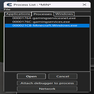 まずチートエンジンを起動してMinecraft.Windows.exeを選択します