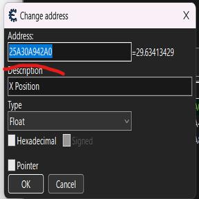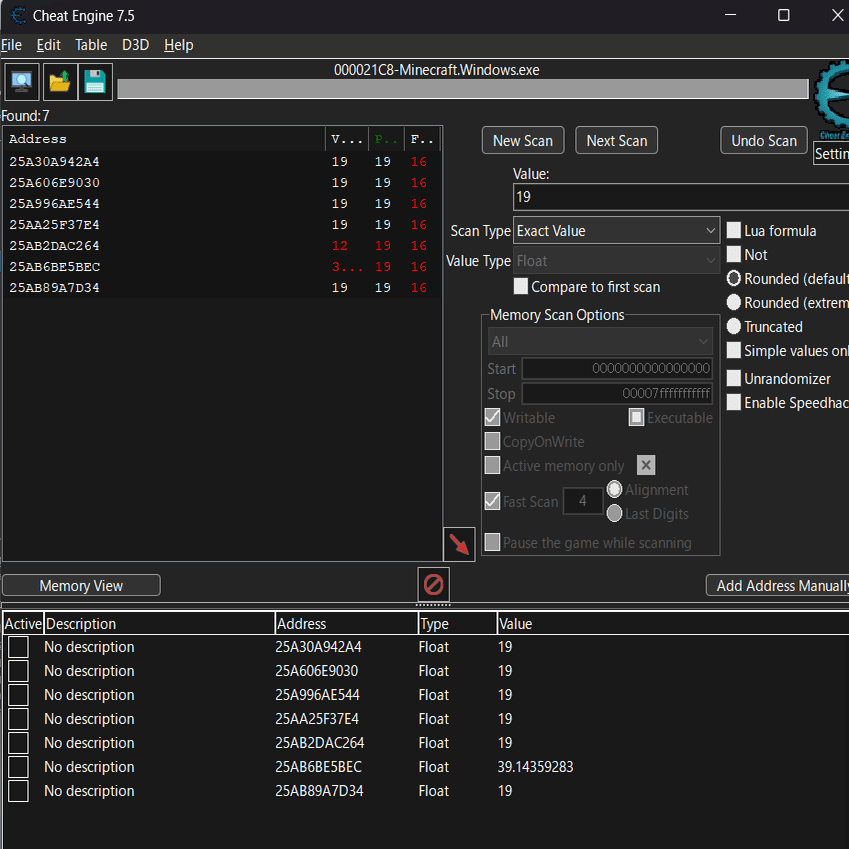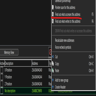 CheatEngine側で編集したときにマイクラの自分の位置が変わったら