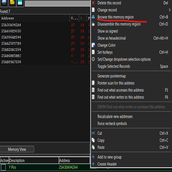 これでプレイヤーのY座標を見つけることができました