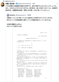「西播磨県民局長だった人による文書の送付先は、当初、報道機関など外部でした。ですので、ここで言う内部公益通報には該当しません。しかしながら、その後の4月4日、西播磨県民局長だった人は、兵庫県の正式な内部通報窓口に通報したというふうに報道されています。これについては、内部公益通報に該当し…」(https://slownews.com/n/nd7f71de04bff)