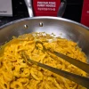 떡과 넓적당면이 들어간 로제소스로 만든 떡볶이와