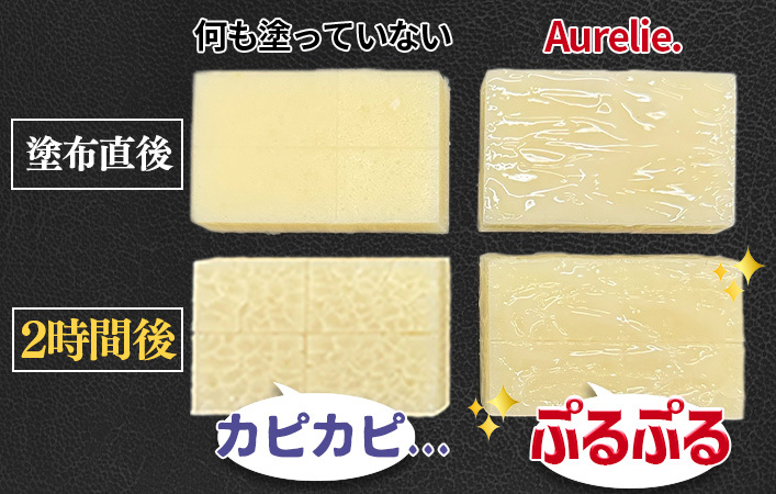 ※自社実験/リッチセラムと何も塗布していないお餅を3時間おいて比較