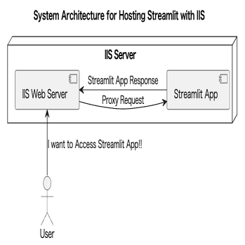 リバースプロキシは、クライアント(ユーザー)からのリクエストを受け取り、それを適切なバックエンドサーバーに転送し、その結果をクライアントに返す役割を持つサーバーのことです。IISをリバースプロキシとして使用することで、内部のサーバー(この場合はStreamlitアプリケーション)を直接公開せずに外部アクセスを可能にします。