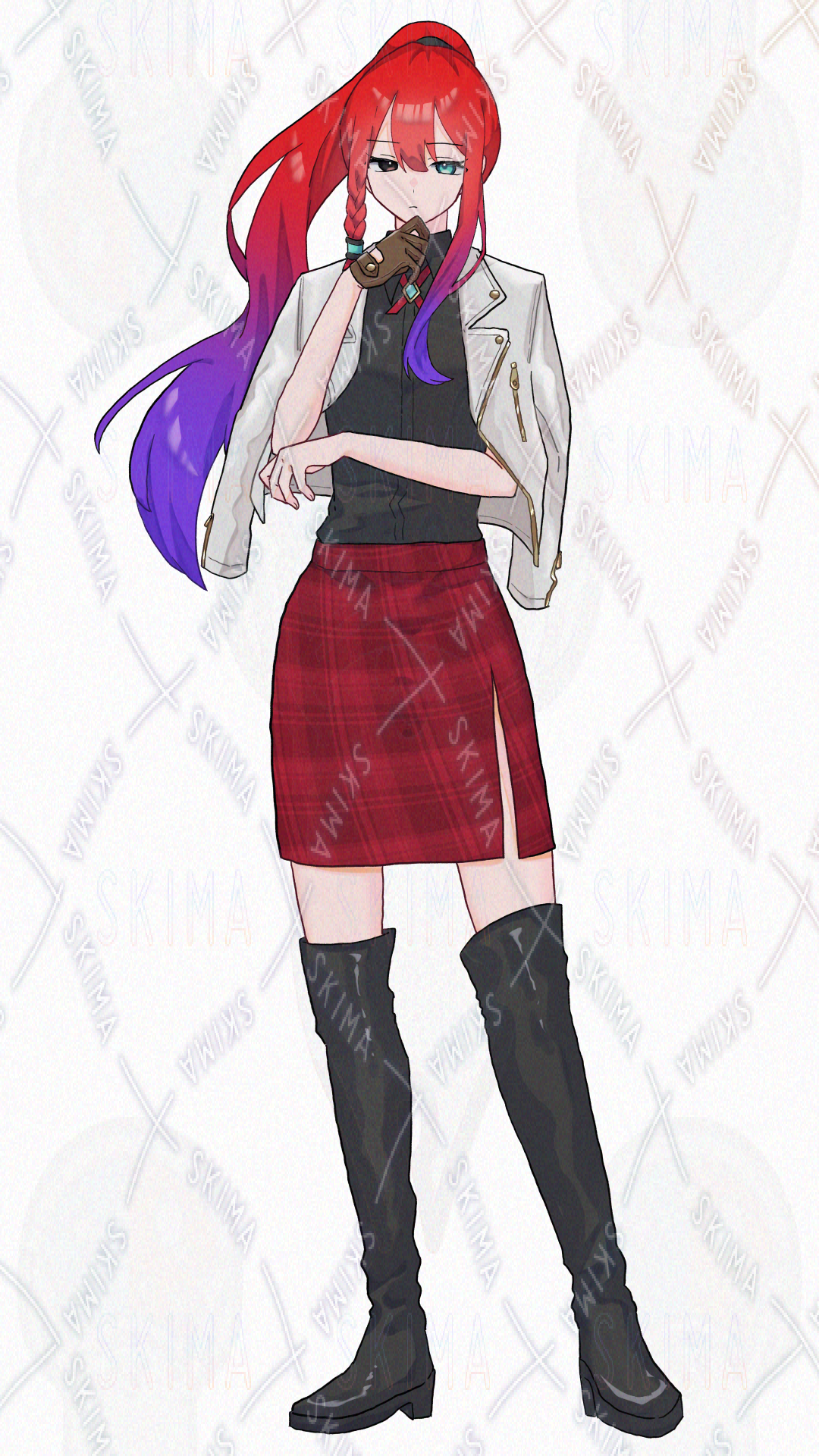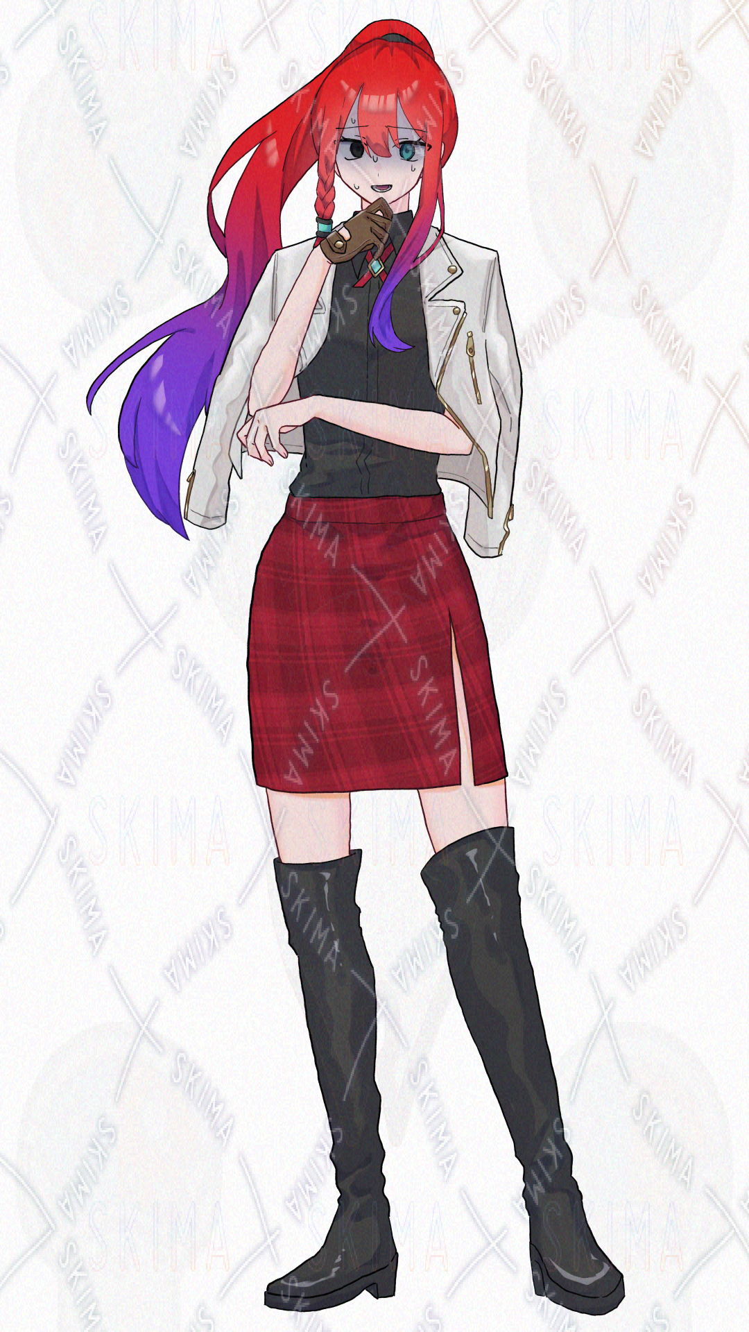 赤髪ポニテのオッドアイお姉さん【表情差分4種】
