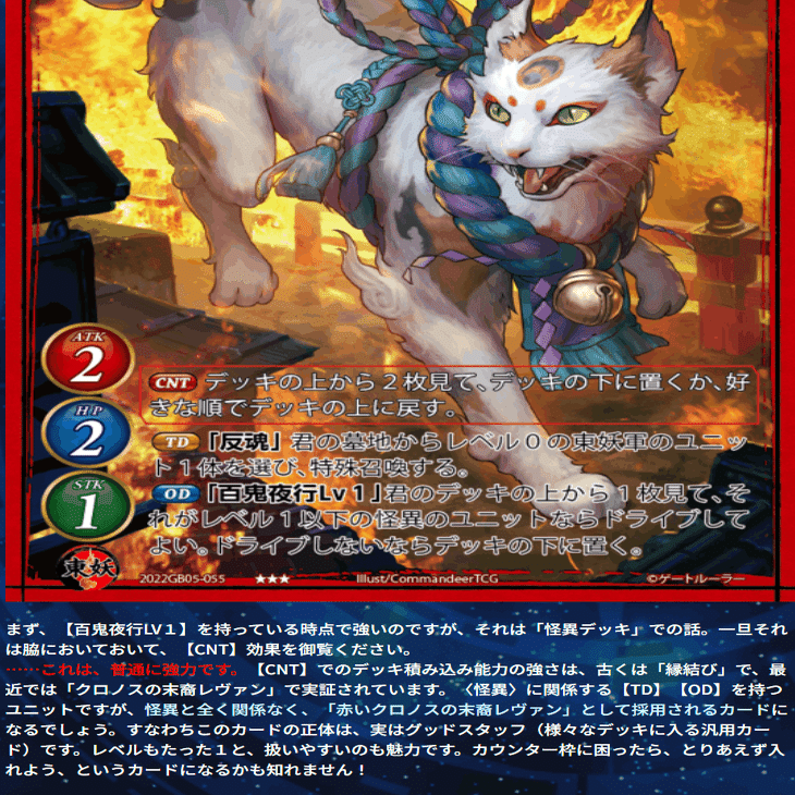 ゲッシュを使いたいなぁと思い、怪異の百鬼夜行に注目しつつもそれだけに頼り切らない構築にしました。