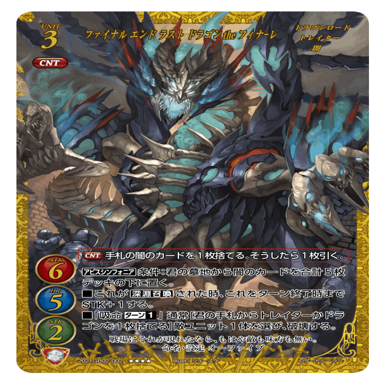 2023年6月16日から8月末まで開催される『ゲートルーラーサマーフェス』(参加費2,000円)にて閉ざされた神話が参加賞として配布されますし、ヴァベルシオンもベストブースターのおかげで一応出回ってはいるのでそちらを入手していただければこのゲームでも上位レベルの強さを持ったデッキになると思います。