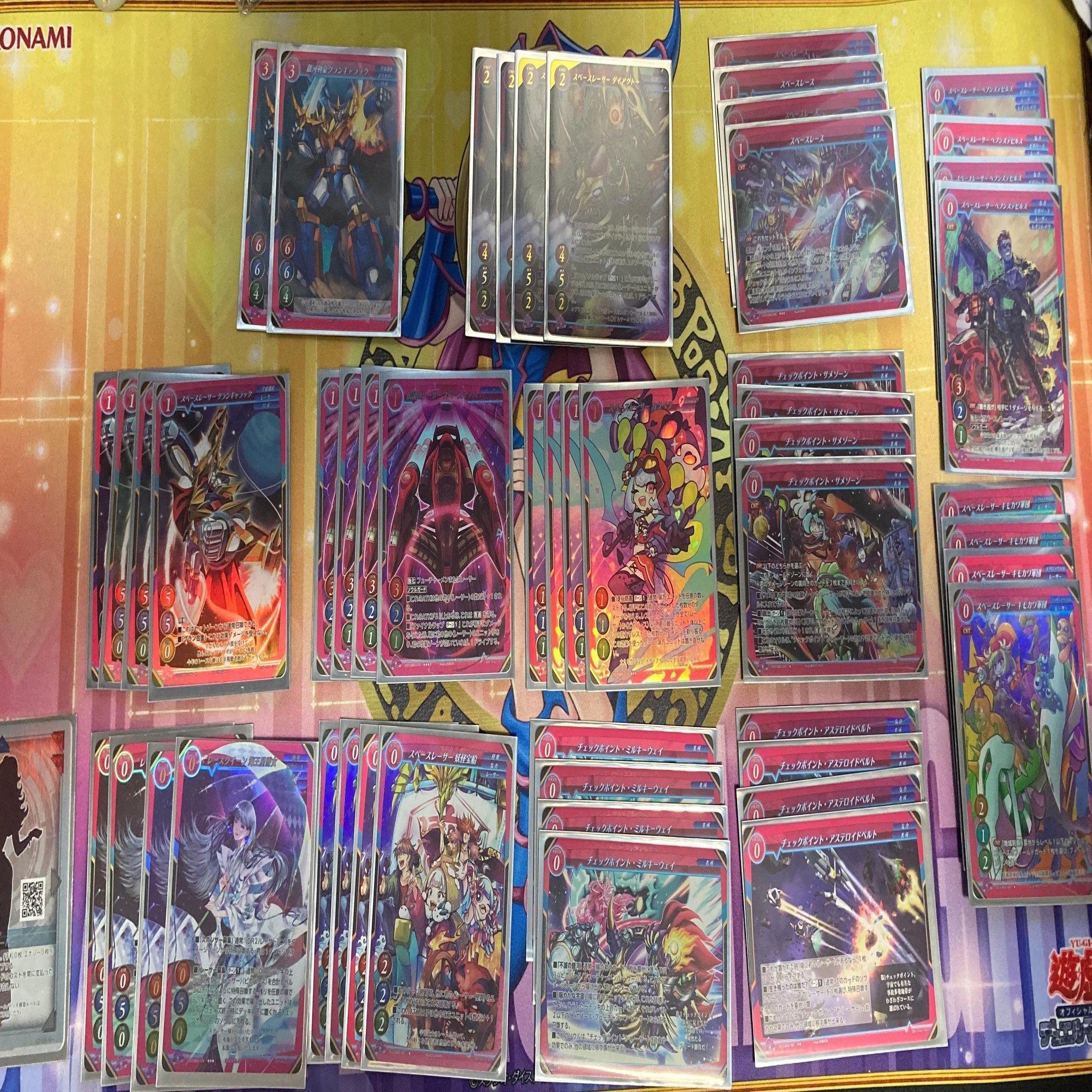 5弾に入っているスペースレーサーレヴァン以外のレーサー関係のカードを4枚ずつ積み、余ったデッキポイント6を【CNT】以外のレベル3カード2枚入れることで完成します。