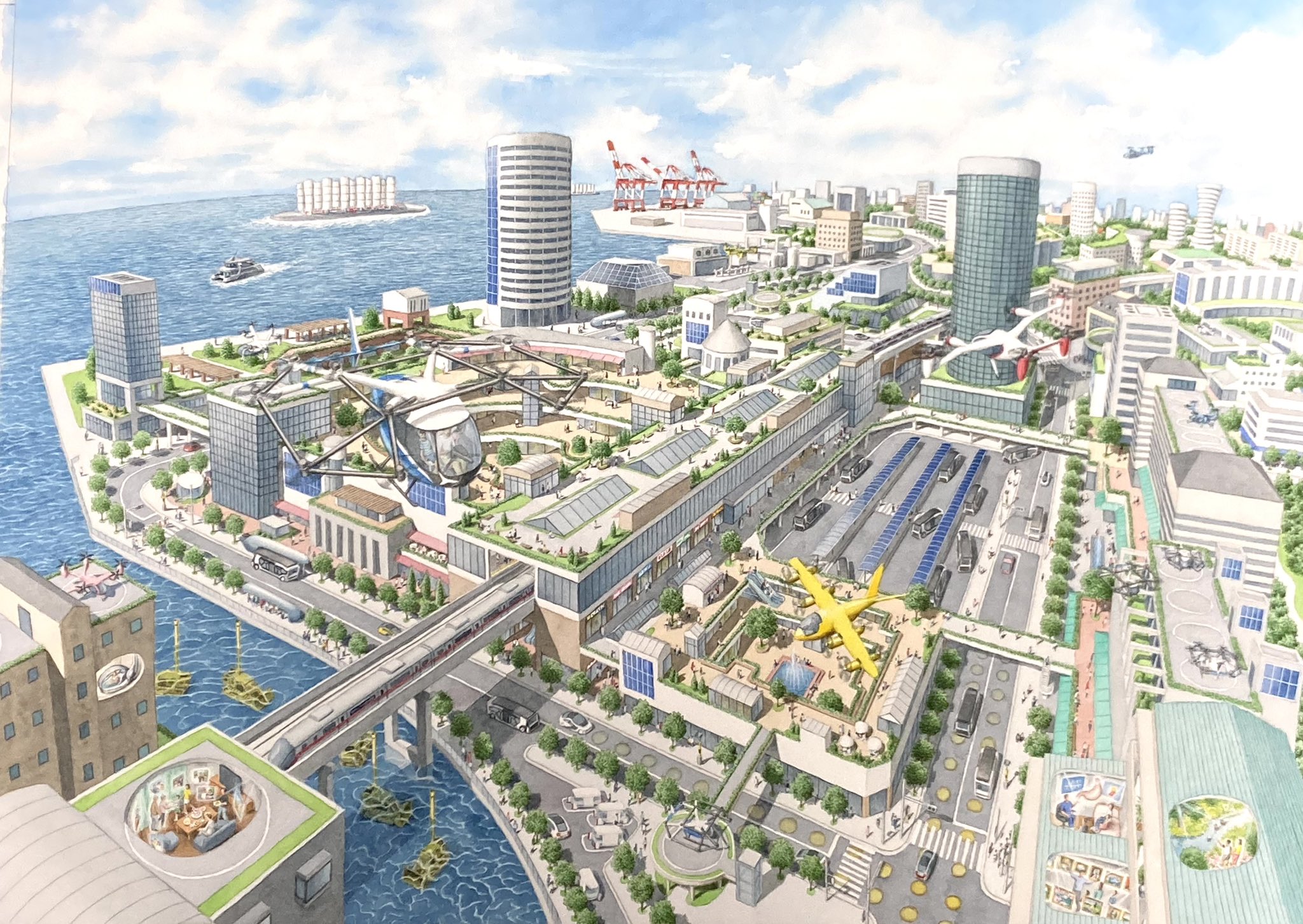 前代未聞な事が起きました! 「大阪・関西万博 公式ガイドブック」で未来都市のイラストを描きましたが、完成品ではなく、制作途中でレイアウト検討のために必要と言われスマホで撮って編集部に送ったものがそのまま載ってました! こんな事30年描いてきて初めてです!