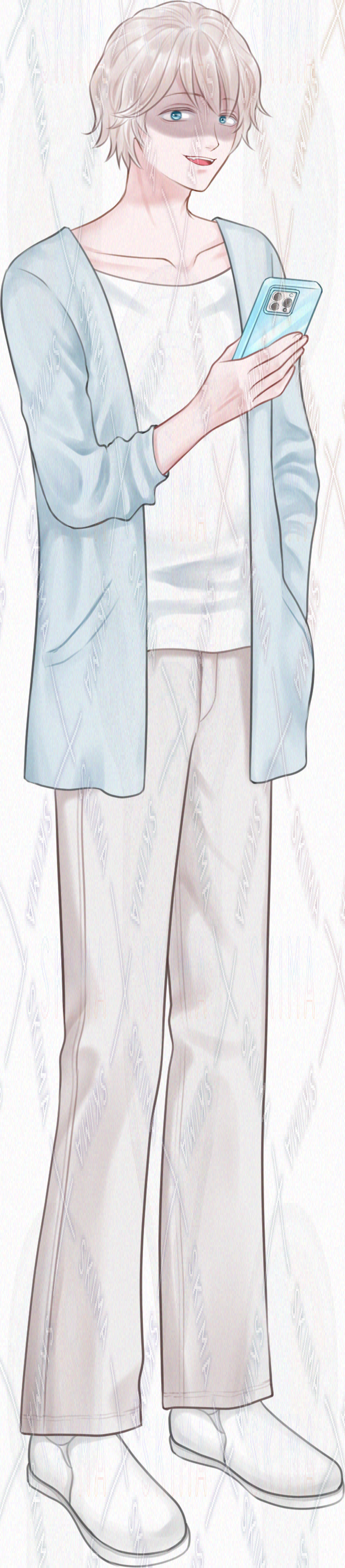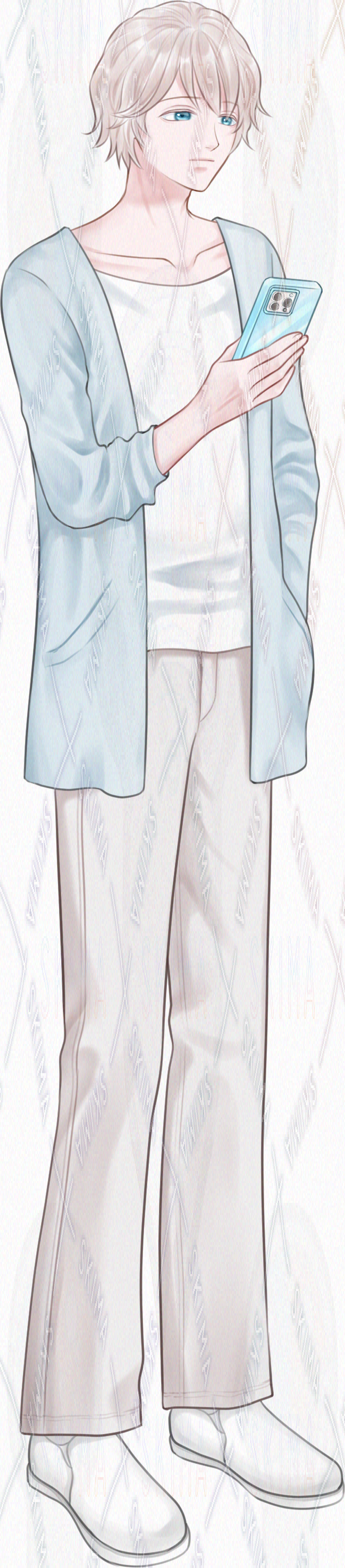 【表情10種】色素の薄い青年の全身立ち絵