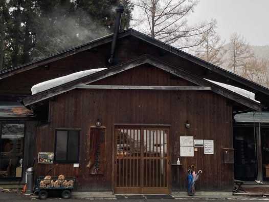 子安温泉がある高山村は雪が降っていた。