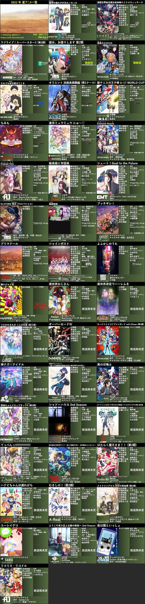 - 【画像あり】夏アニメ一覧wwwwwwwwwwwwwwwwwwwww〈なんJクエスト〉