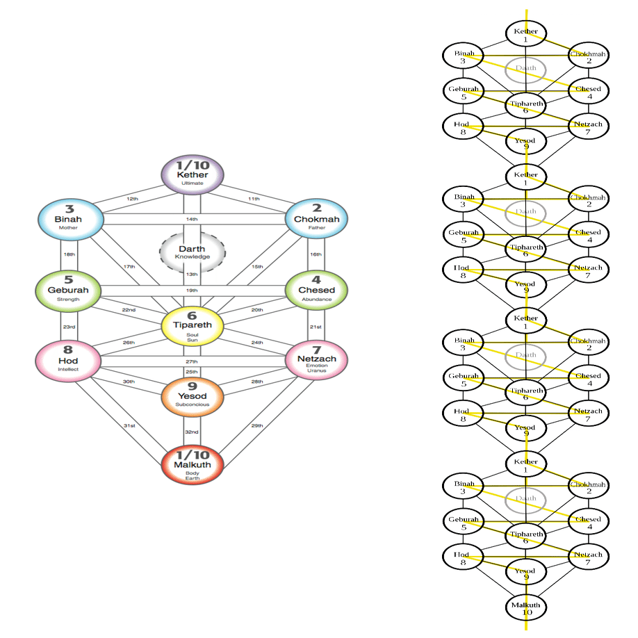 カバリストが「10 / 1」で真っ先に連想するものはセフィロトです。セフィロトで「ケテル / 1」は、一つの完結であり、複雑な初級「マルクト / 10」となり、この世の理「繰り返し・時間・周期性」を示します。