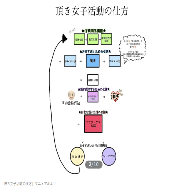「あくまでもおぢのほうからなんとかしてあげたい❣️と思わせることがとっても大事」「おぢの最終的な意志でお金を手渡ししたり振り込んだりしてくれてるわけなので罪悪感はないです」