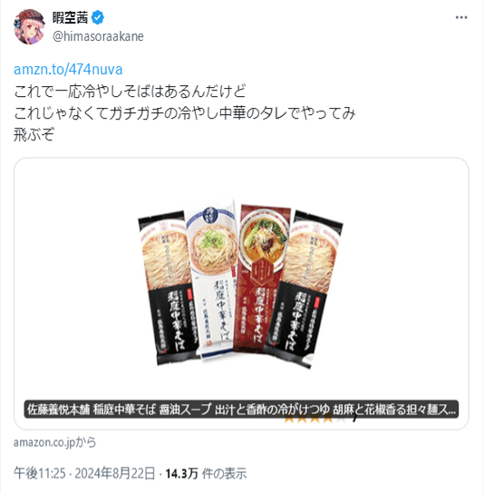 ひ「僕の稲庭中華そばツイートは、「このツイートは広告主がわからない!広告主がわからないからステマだ!!」らしいよ」