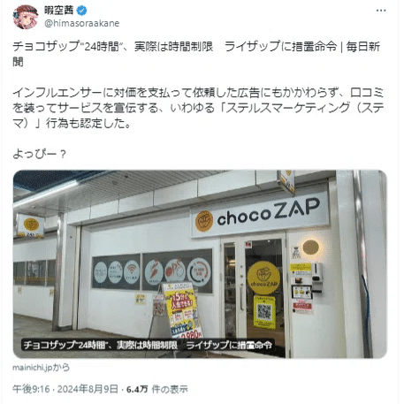 よっぴー「①景品表示法違反ってゆわれた! or②広告主がわからない広告のやり方(景品表示法より前から世間一般でステマと呼ばれた行為のこと、あとから追加)であるとゆわれた!」