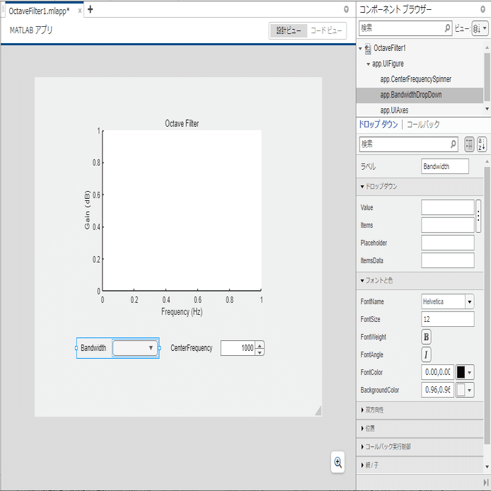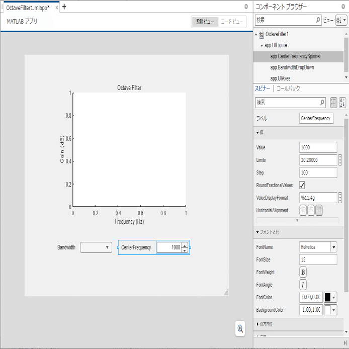 MATLABでGUI付きアプリ開発 ~ App Designer を使おう(4)~ フィルター周波数・バンド幅をマウスで操作