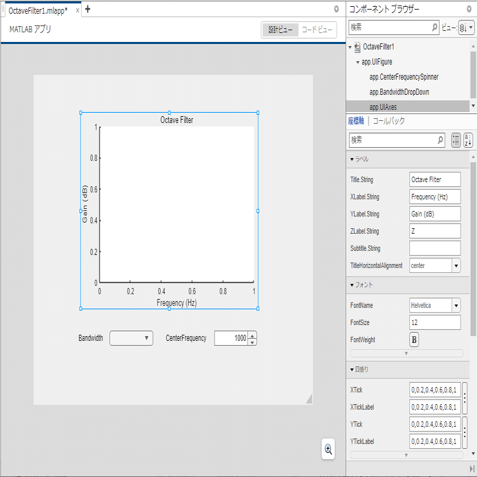 > appdesigner OctaveFilter1と打つか、
