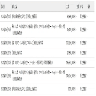 2021年7月に146百万円が交付決定、2021年10月に165百万円に増額、書いていませんが、最終的に20百万円を返金しているので、同社が受領した金額は145百万円です。ちなみに、見ての通り以降毎年それくらいの規模の補助金を継続的に受けておられます。