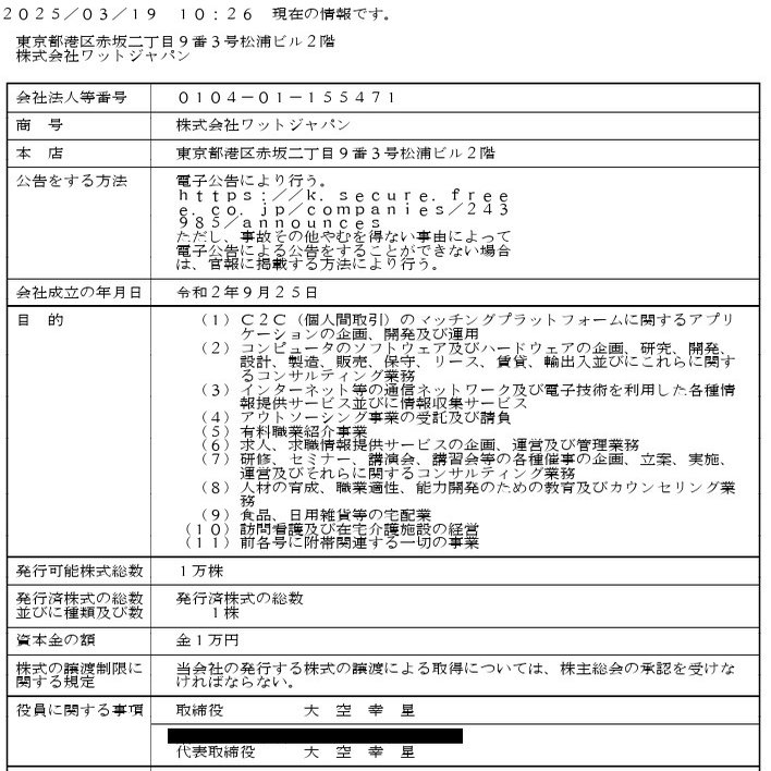 なんでそんなことを私が心配するかというと、あなたのいばしょの旧公的住所には、大空氏が代表を務める株式会社が存在しているからなんですよね。心配しすぎかな?