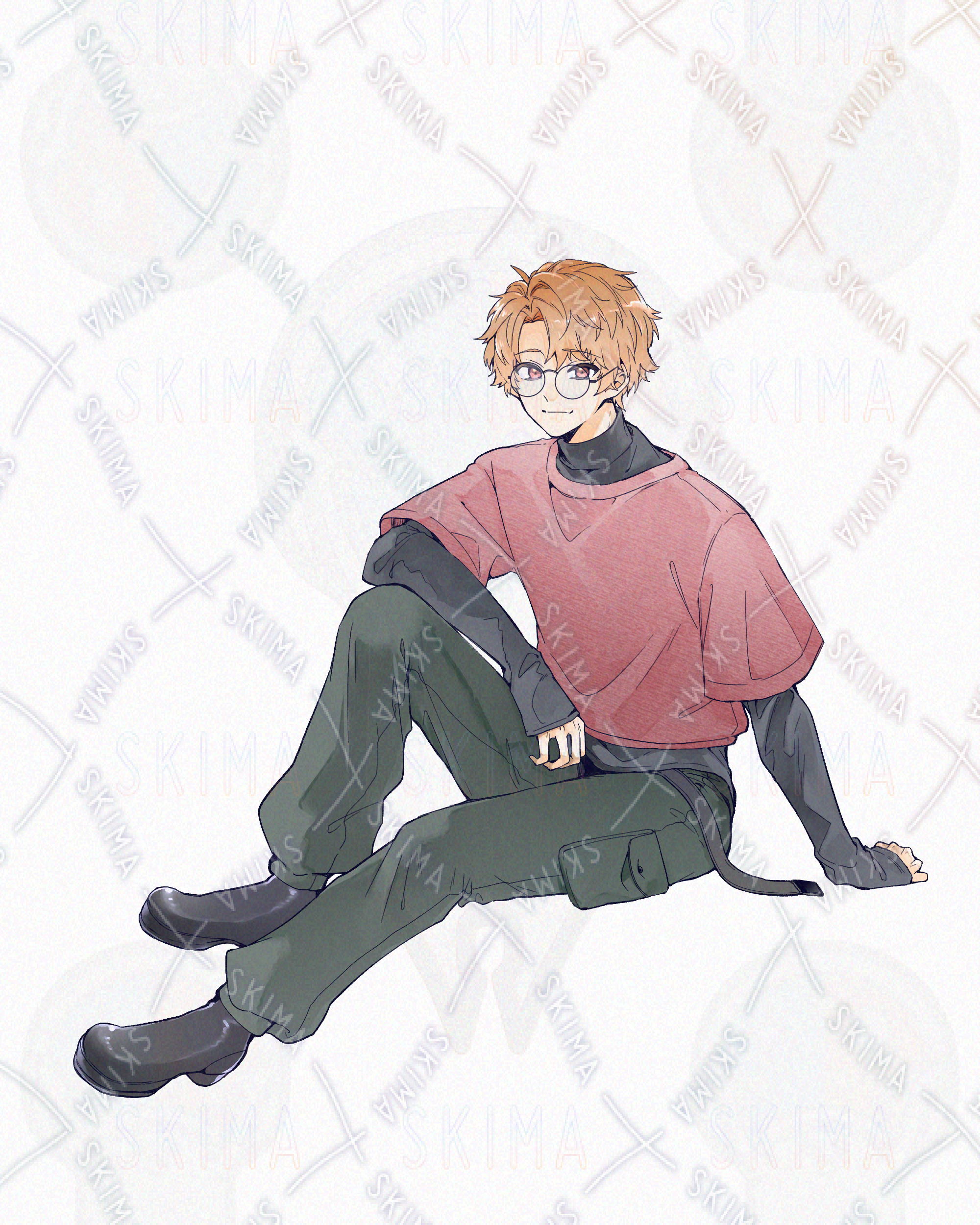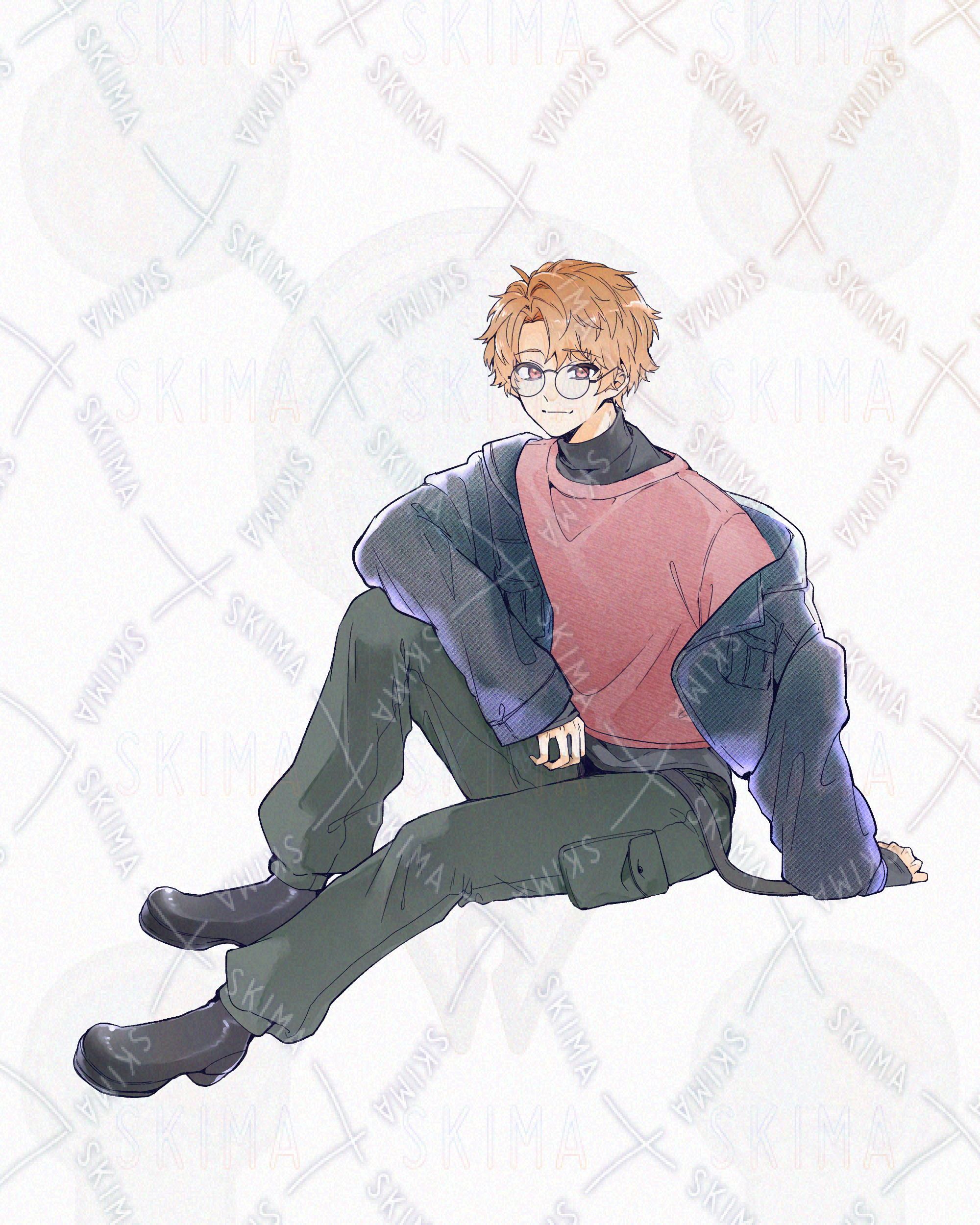 全身立ち絵 男性 茶髪 オレンジ髪 眼鏡 大学生 わんこ 犬系男子