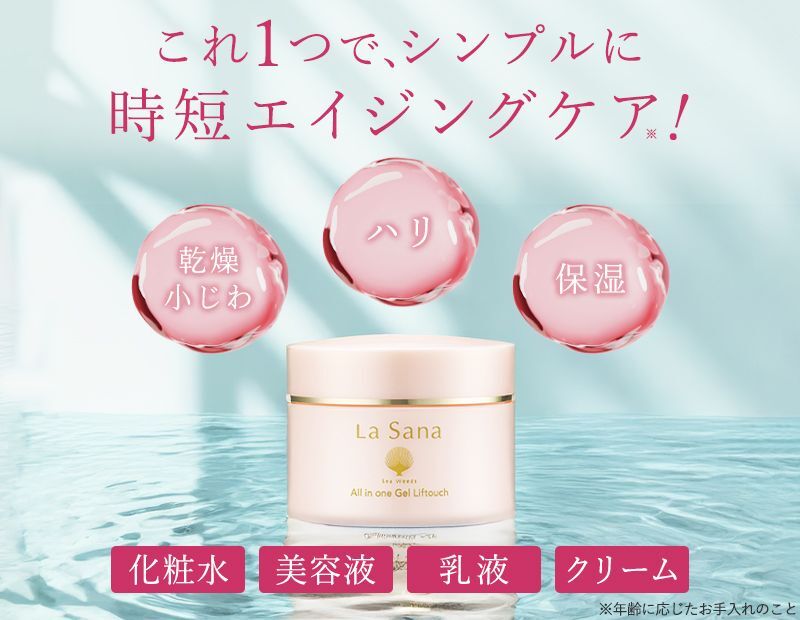 年々小じわが目立つのが悩みでした。オールインワン初チャレンジで思い切って購入してみると、ひと塗りしただけでリピ買い即決😭すっかり悩んでいたことも忘れて、、もっと早く知りたかったです…(泣)テクスチャもべたつかなくて今ではこれなしでは生きていけないです!!