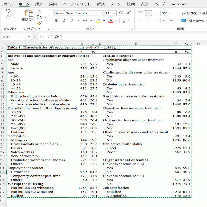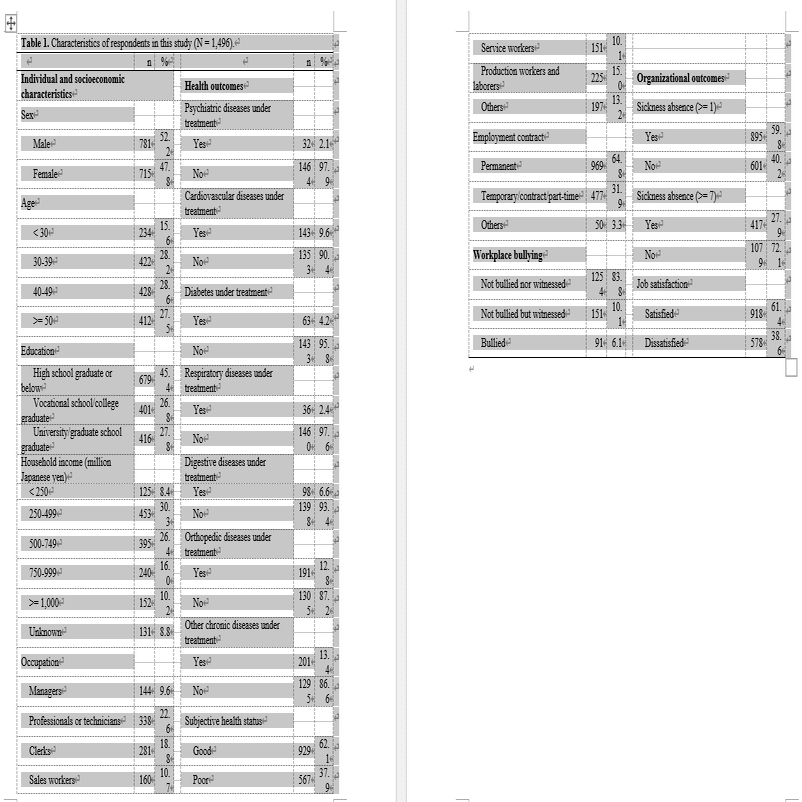 なお今回使用した表は、2022年にPlos Oneに掲載された論文のものです。論文掲載バージョンの表はこちらからご確認下さい。