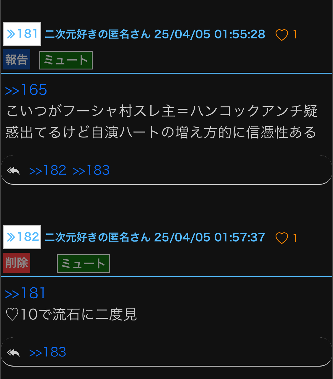 まぁフーシャ村スレに100いいね付ける界隈だしなで納得した - 185二次元好きの匿名さん25/04/05(土) 02:02:05