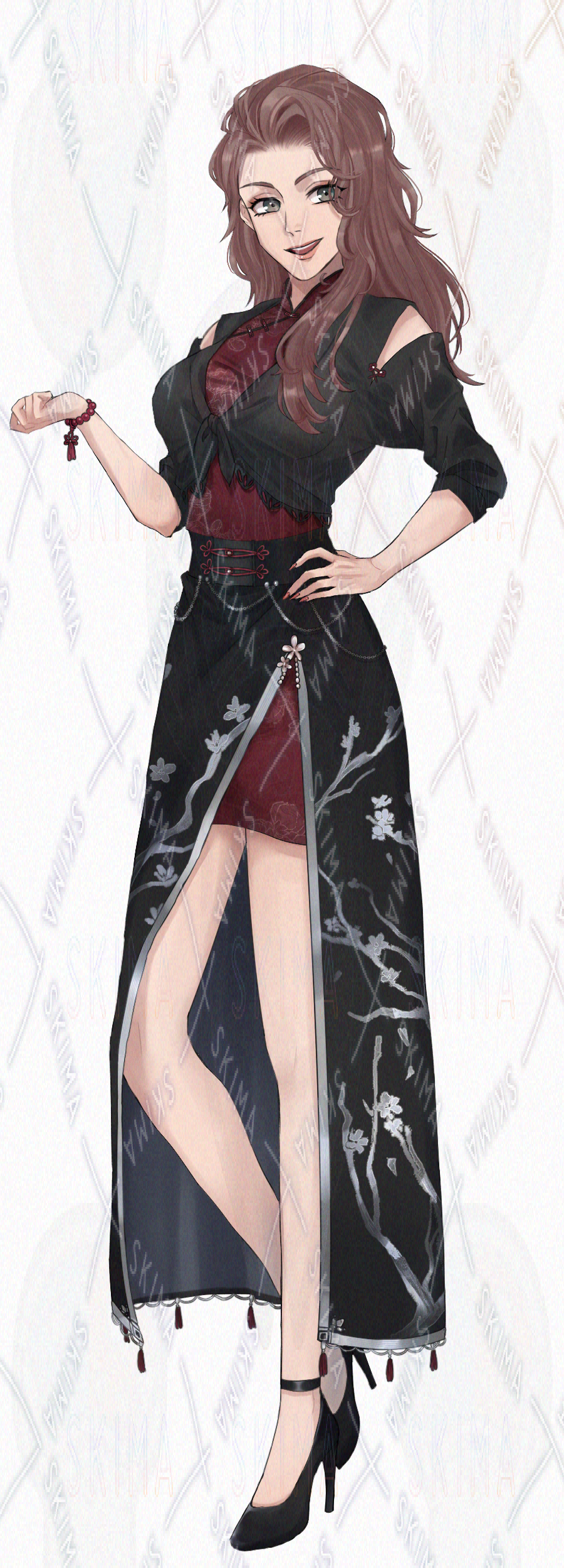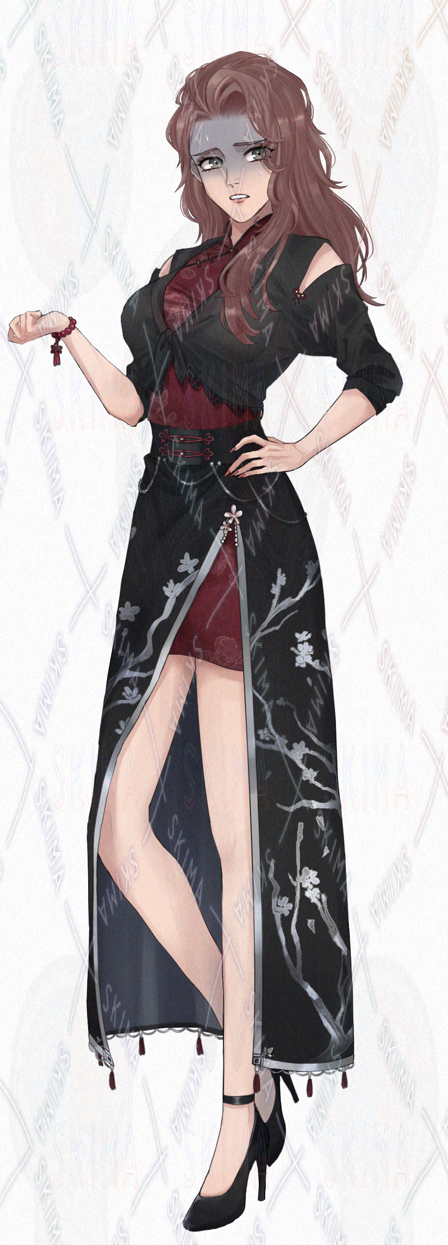 茶髪の中華風な女性の全身立ち絵です。TRPG、ゲーム、アイコン等ご自由に利用ください。
