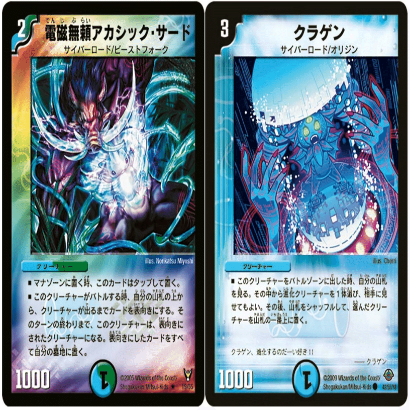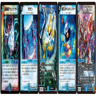 アカシックサードとクラゲンを出してクラゲンの効果で山札を任意の進化クリーチャーに固定。強制バトルさせるカードでアカシックサードを変身させます。主な変身先はギャラクシーデスティニーやカリビアンムーンです。