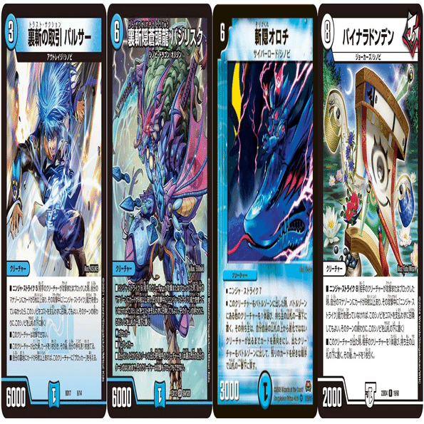 メフィストと合わせることで強力な受け札になります。山札を見てこれらのカードが無い場合、シールドがブレイクされる直前にシノビを出しておくことで、そのシノビと相手のクリーチャーをバトルさせることも狙えます。