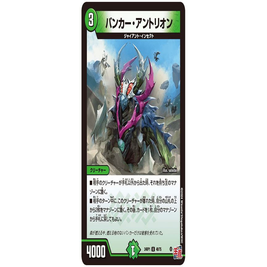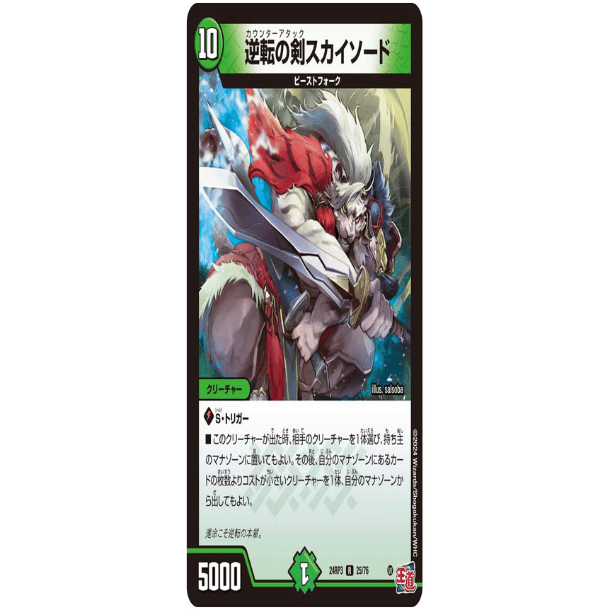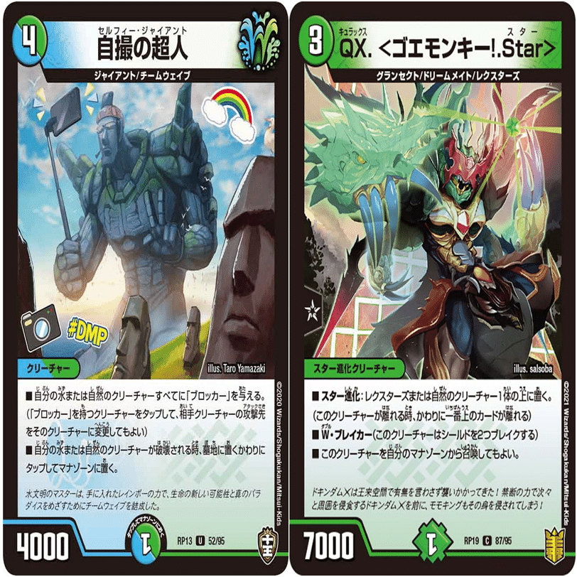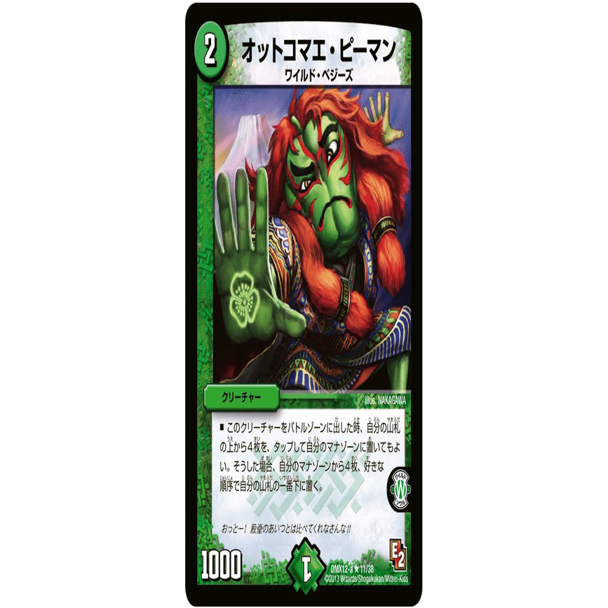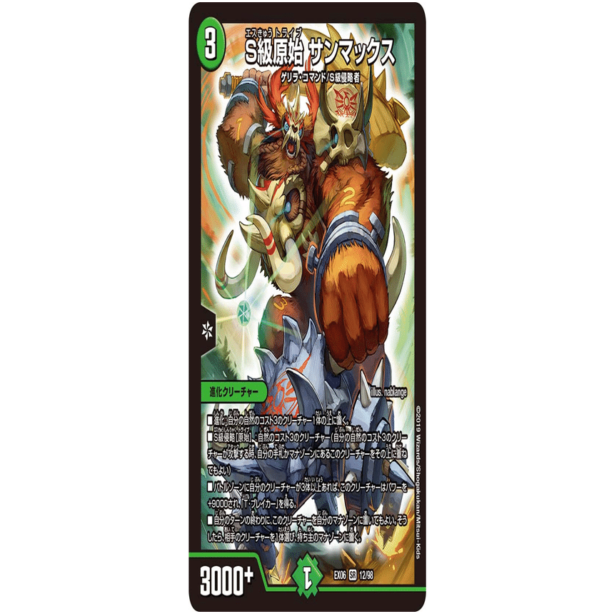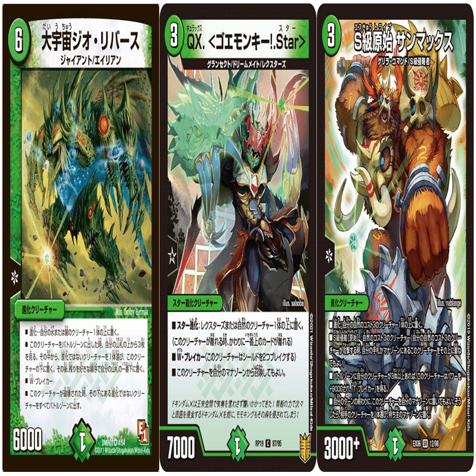 ゴエモンキー!.Starと合わせることで、「ゴエモンキー!.Starをマナから召喚→サンマックスに侵略→終了時にサンマックスの効果でゴエモンキー!.Starマナに戻る」を繰り返せるようになります。相手のシールドを減らす時に使用するコンボです。