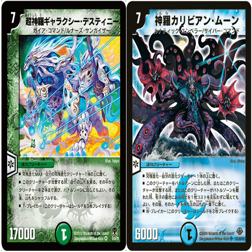 ギャラクシーデスティニーから進化できます。強力な呪文が相手の墓地にある時に使用します。離れる時にも呪文をパクることができ、パワーが低いので自爆特攻も狙えます。母なる星域を使用することでゴエモンキー!.Starや亜堕無鬼-MAXから進化して普通に召喚することもあります。