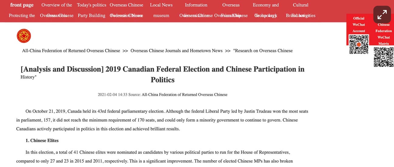These same United Front entities have been credited by Beijing for their role in promoting Chinese Canadian candidates during federal election campaigns.