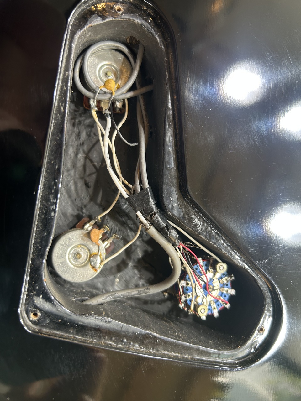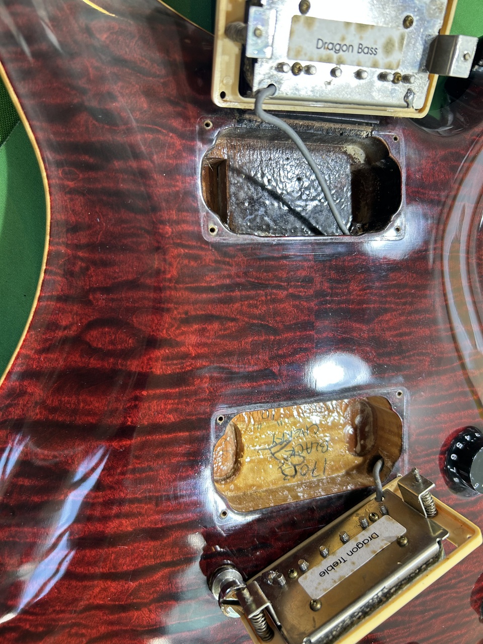 ボディ6弦側にPRSお約束の白濁が見受けられますが美しい10TOPにブラックチェリーカラーが映えます。