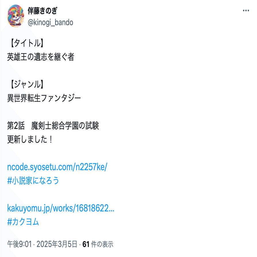 伴藤きのぎ(@kinogi_bando)は、カクヨムと小説家になろうのアカウントを削除した。