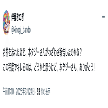 伴藤きのぎ(@kinogi_bando)に関する情報提供は、下記リンクよりお願いいたします。