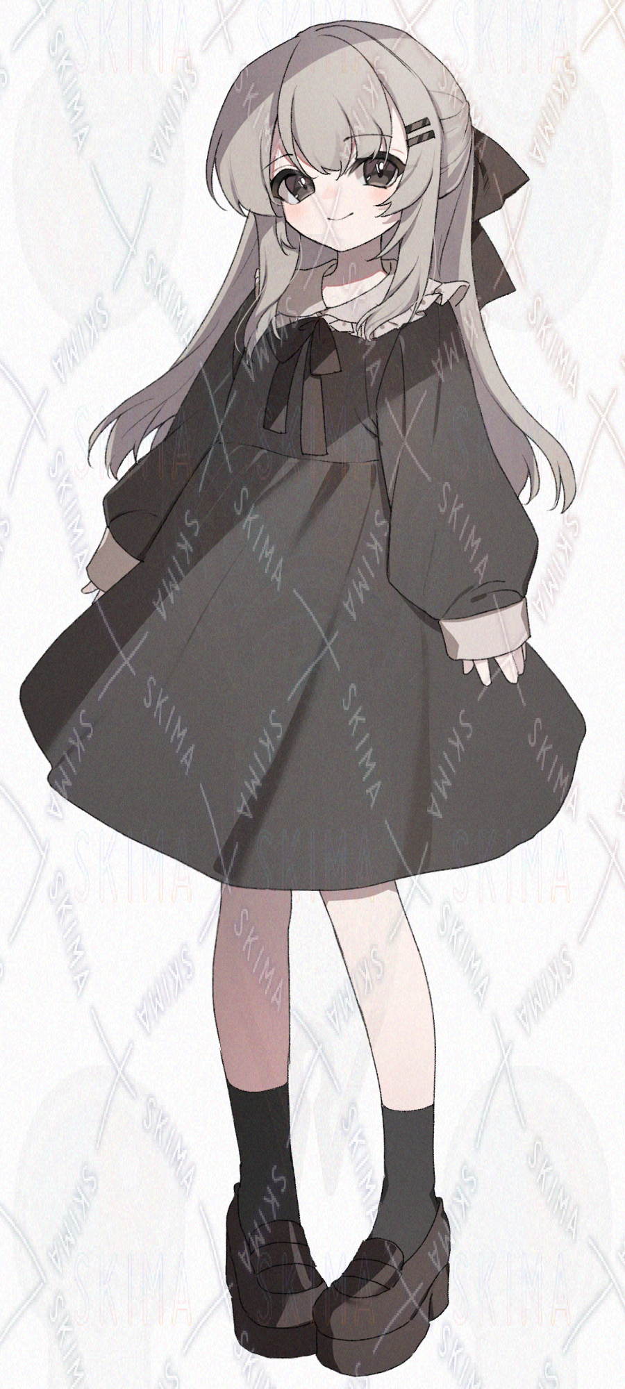 ダークブラウンのワンピースを着た女の子です。キャラ設定はご自由に。