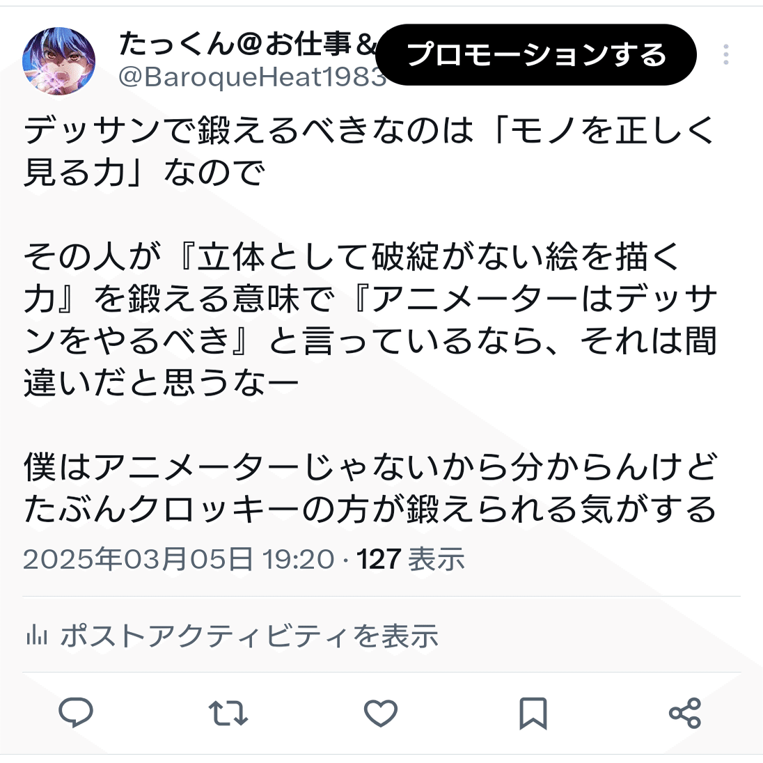 問題点は、僕は「アニメーター」と限定して「クロッキーの方が鍛えられる気がする」と言ったけど
