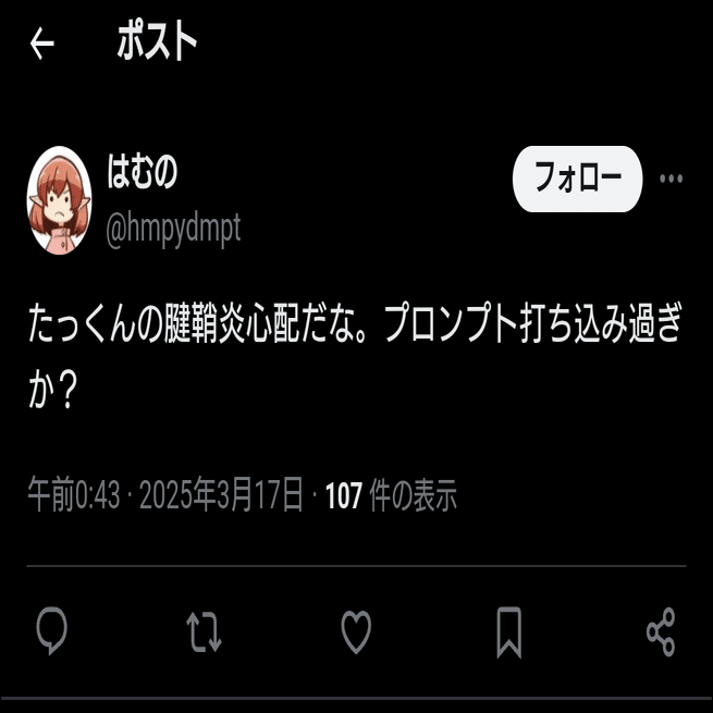 腱鞘炎になるほどのプロンプト打ち is 何