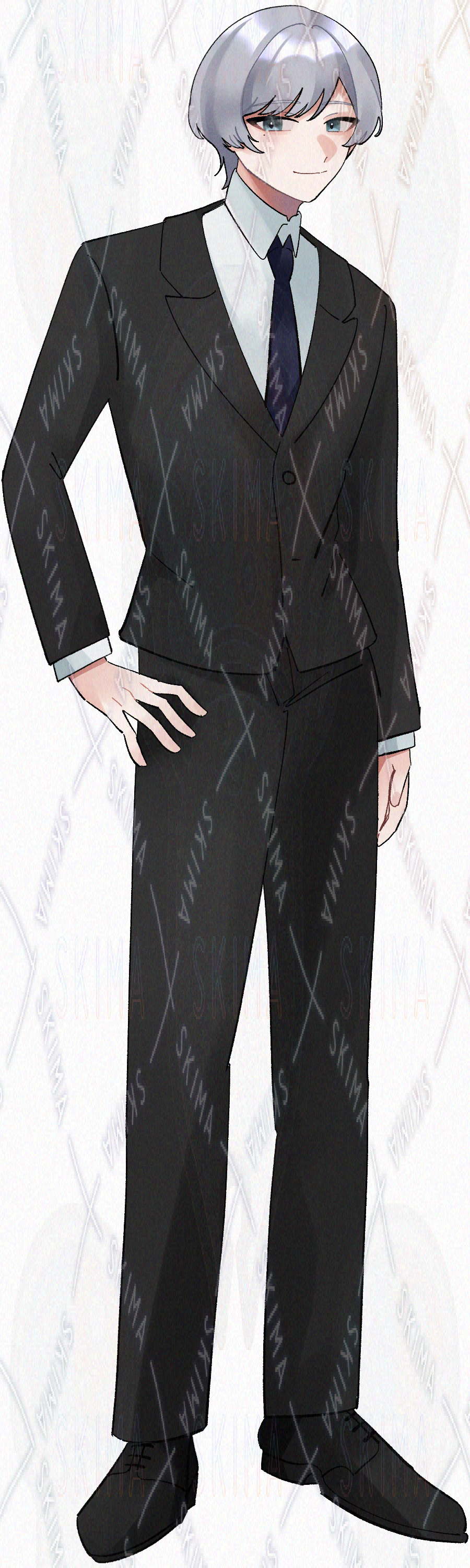 スーツを着た銀髪の男性の立ち絵です。
