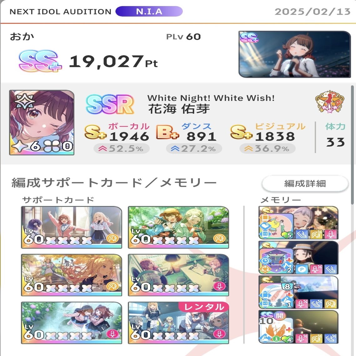 とっても普通の編成に見えるが、この編成のサポカの合計は1290。