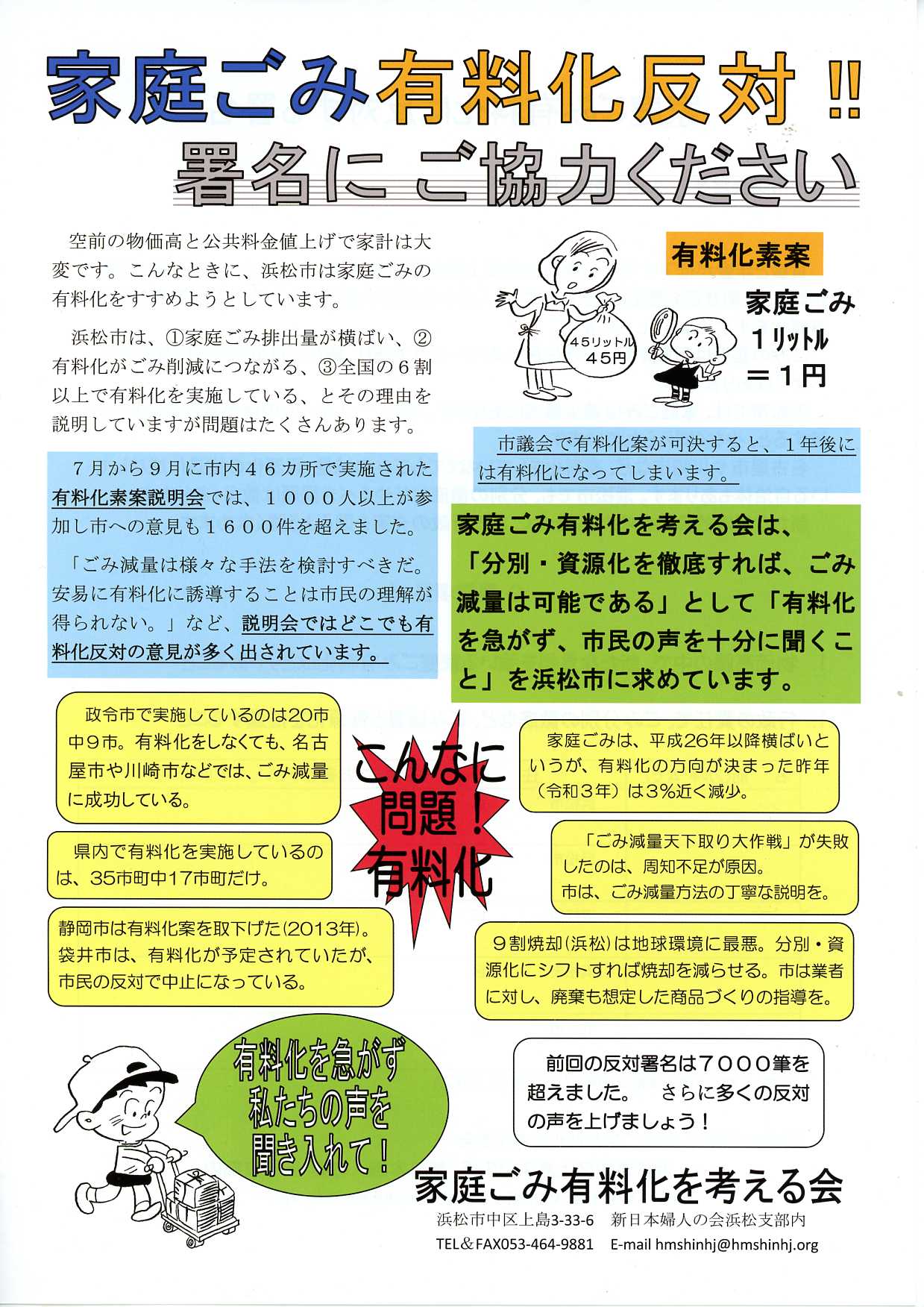 家庭ごみ有料化反対!署名にご協力ください 新日本婦人の会浜松支部