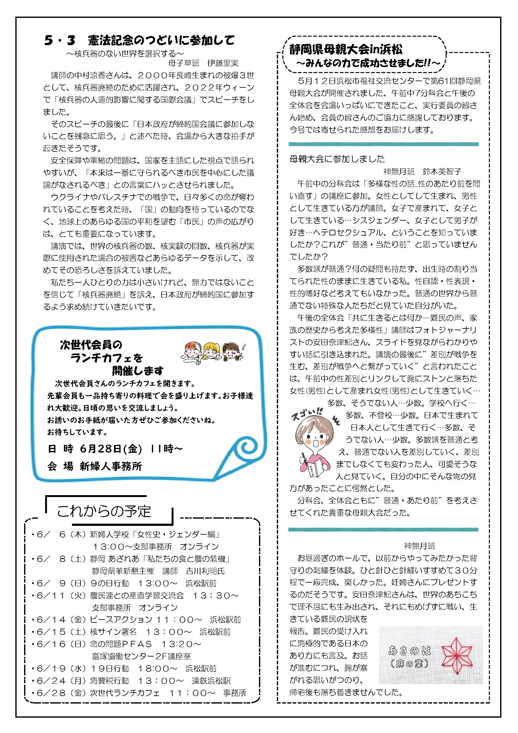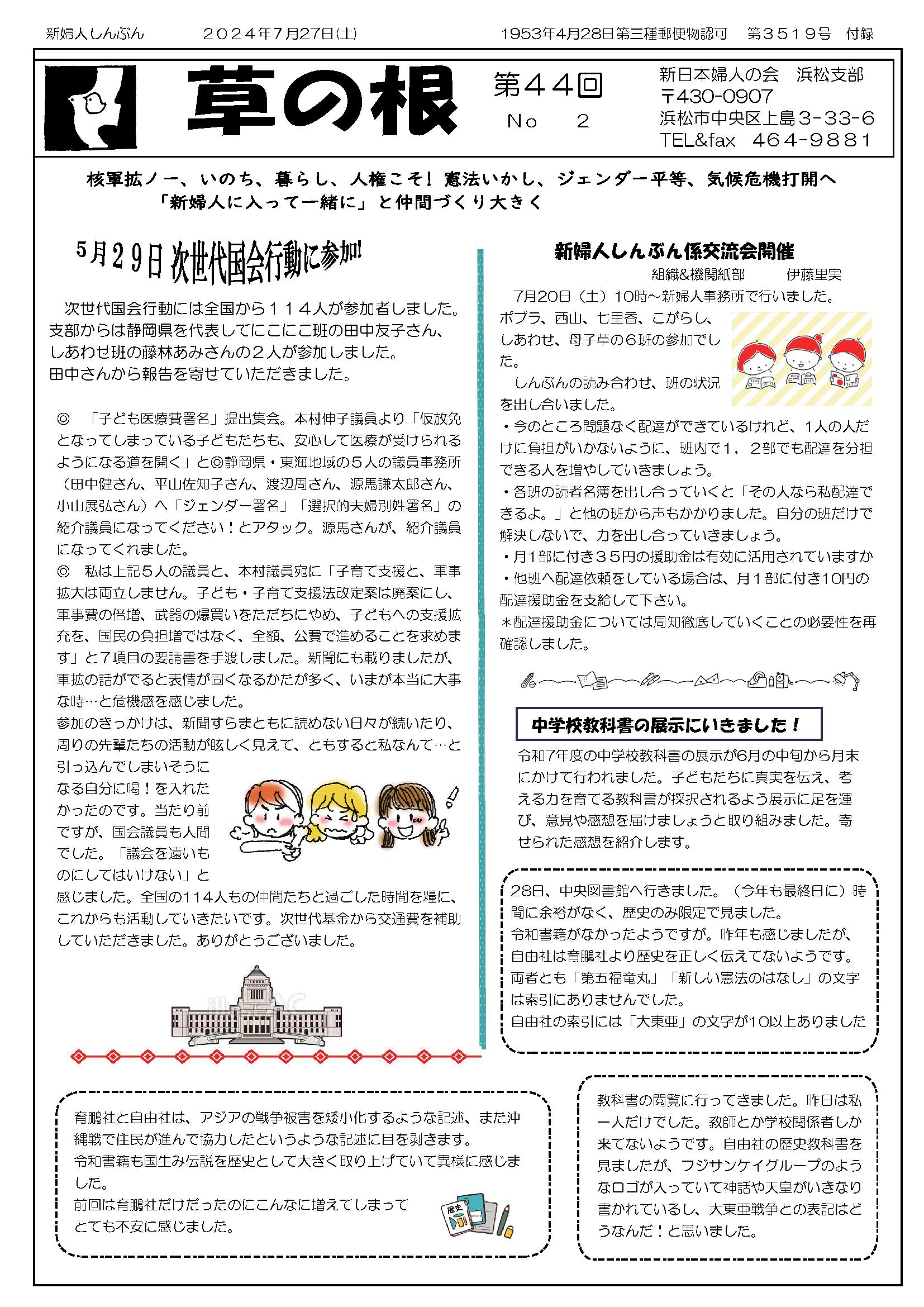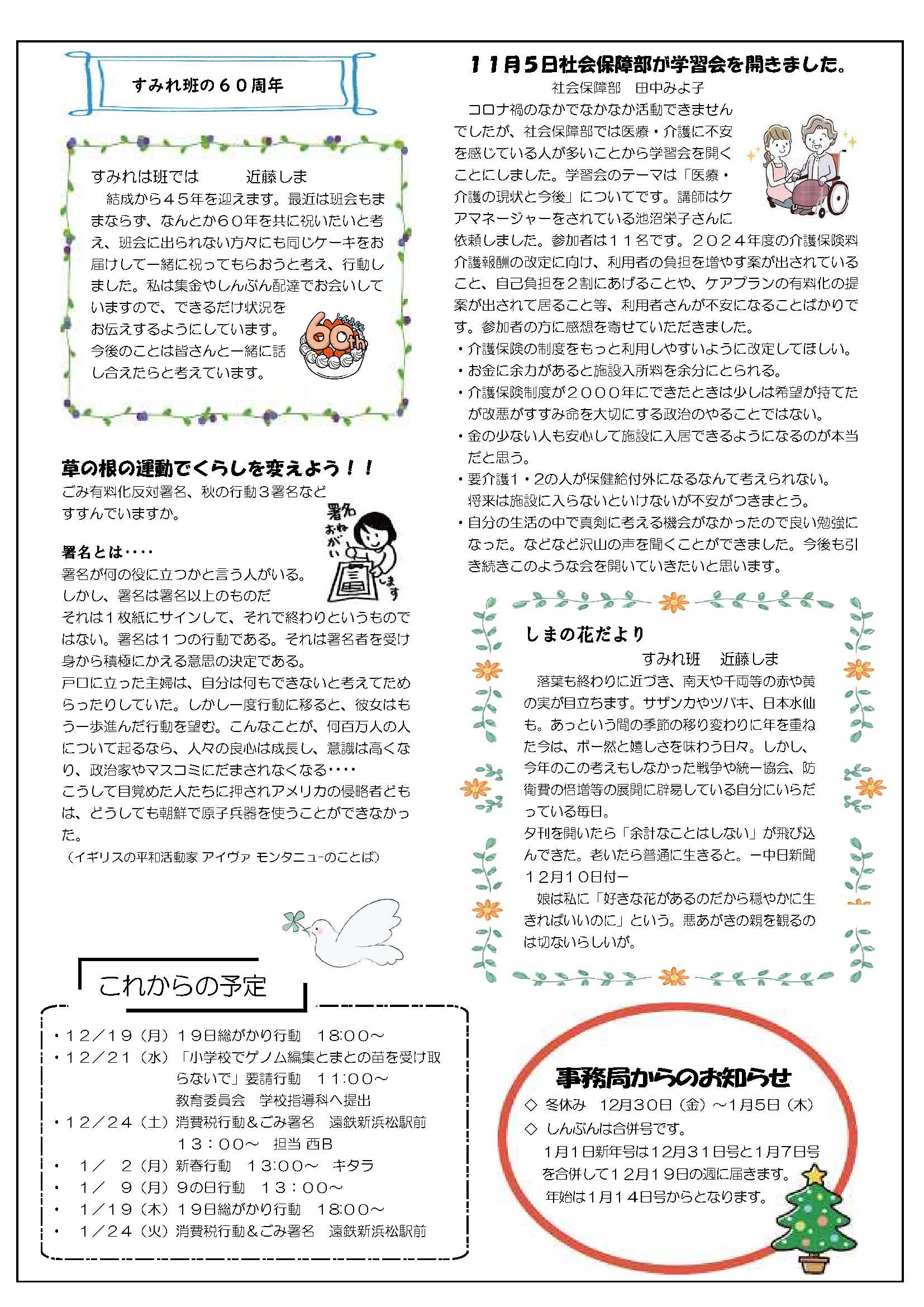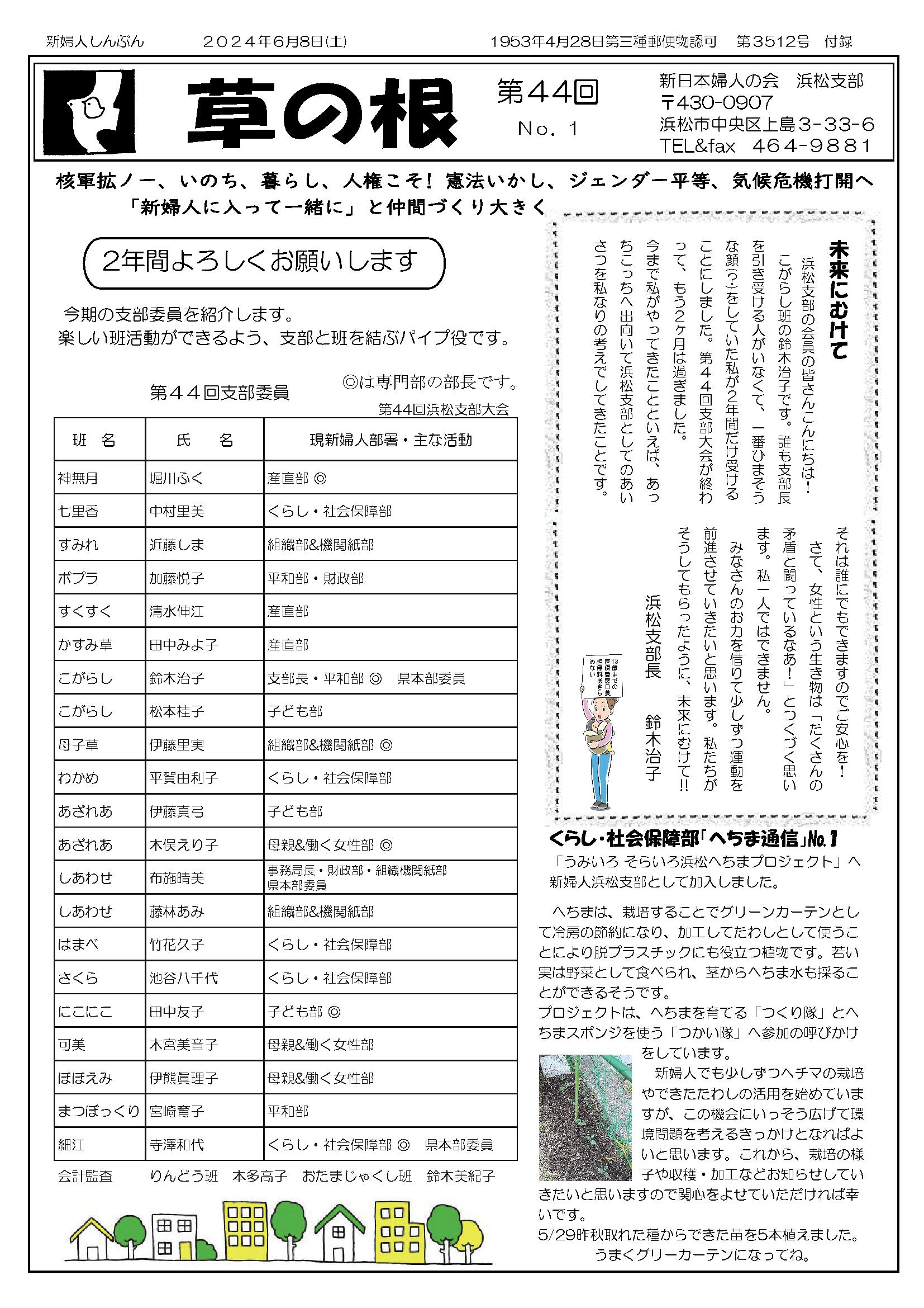 草の根運動でくらしを変えよう 新日本婦人の会浜松支部機関紙