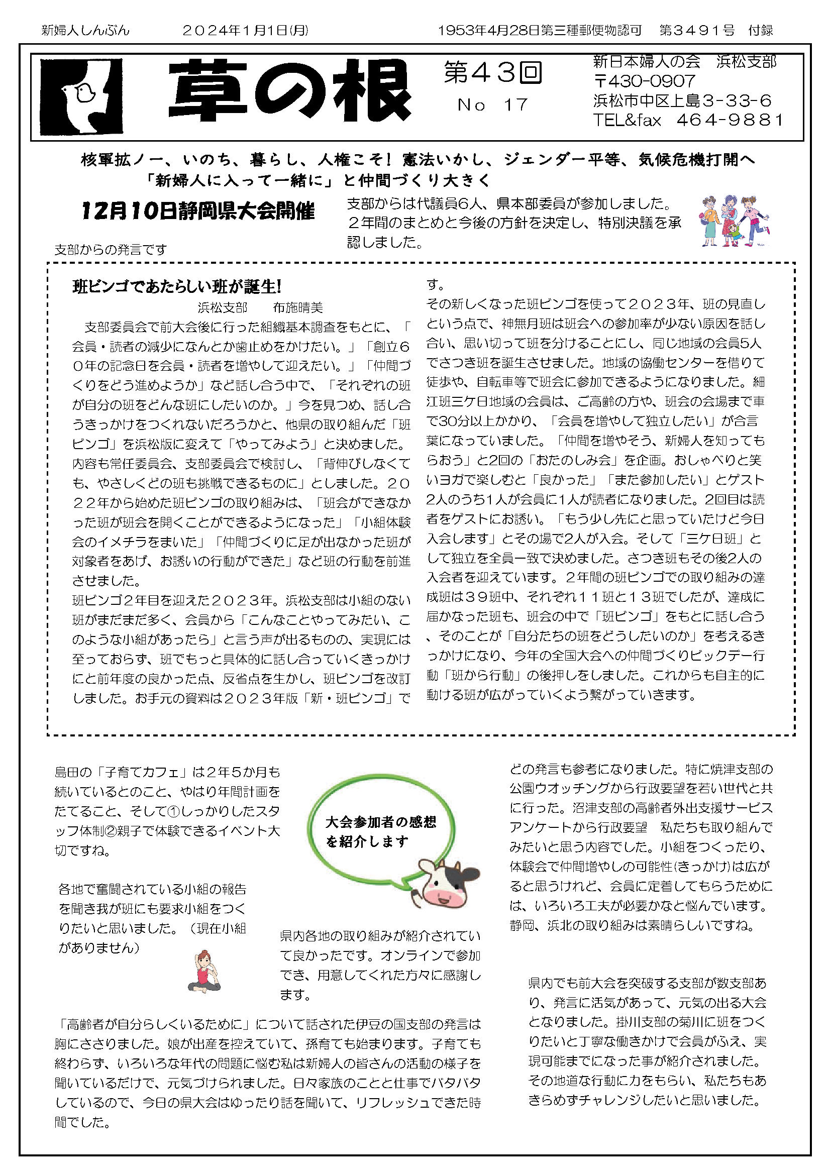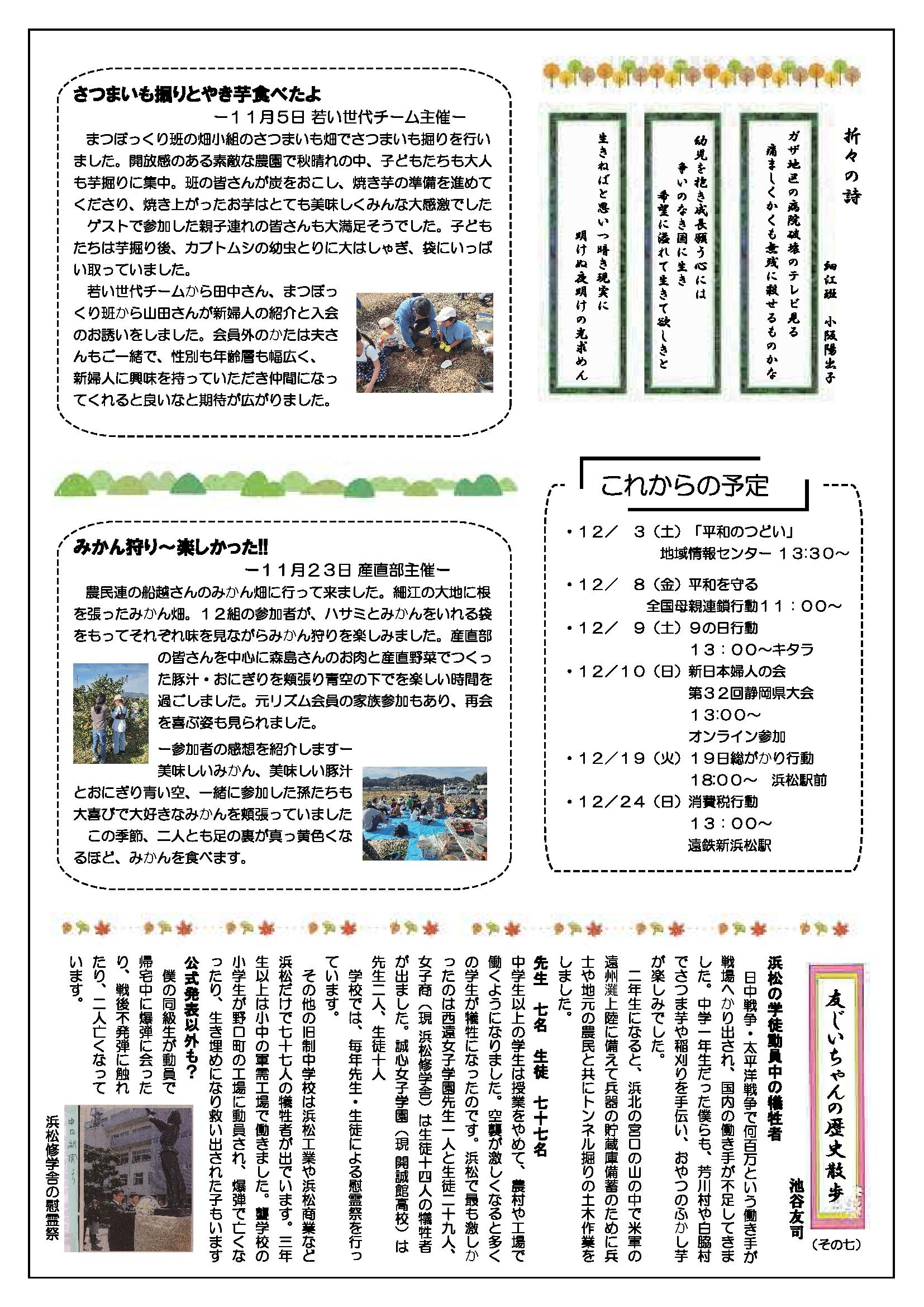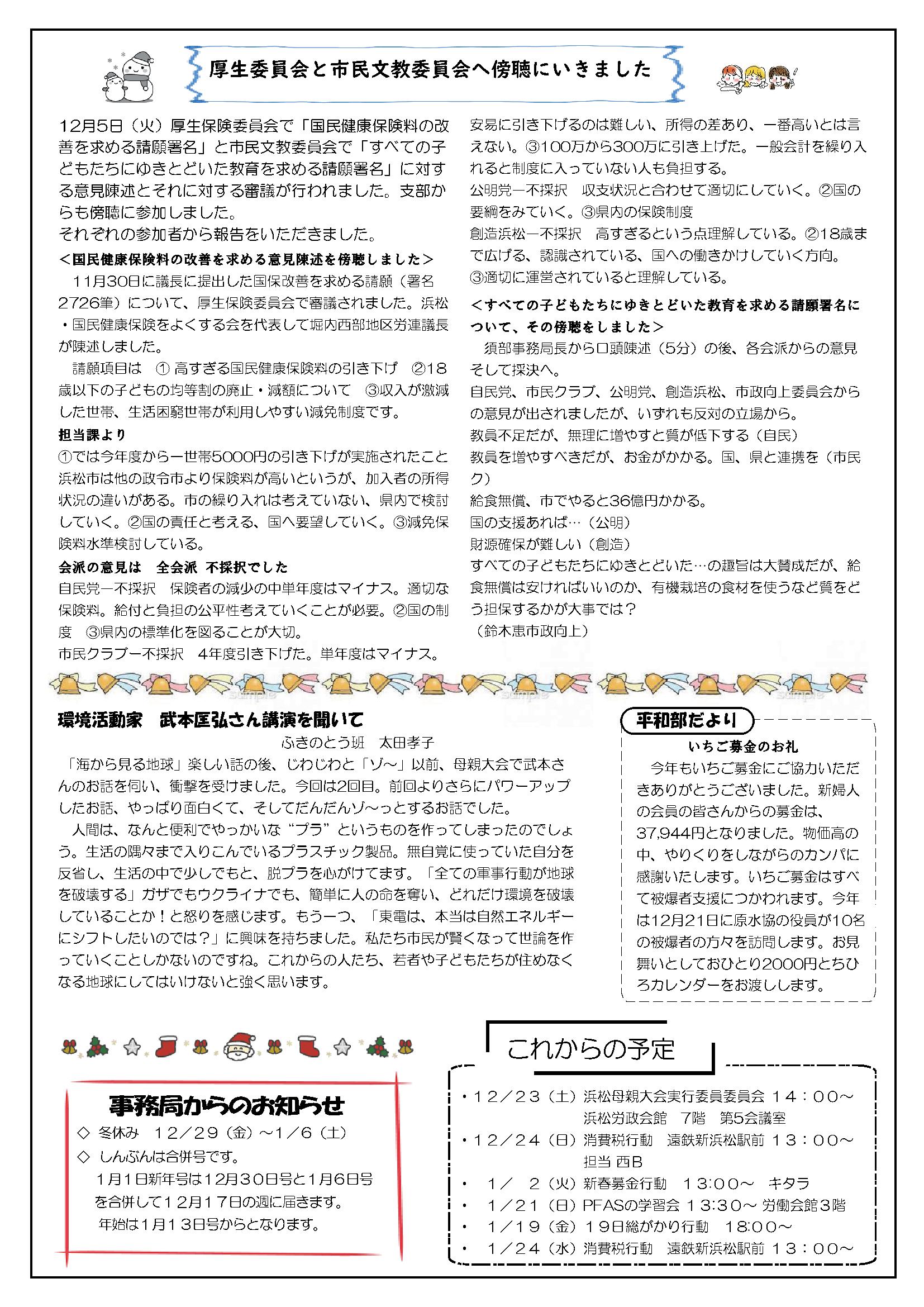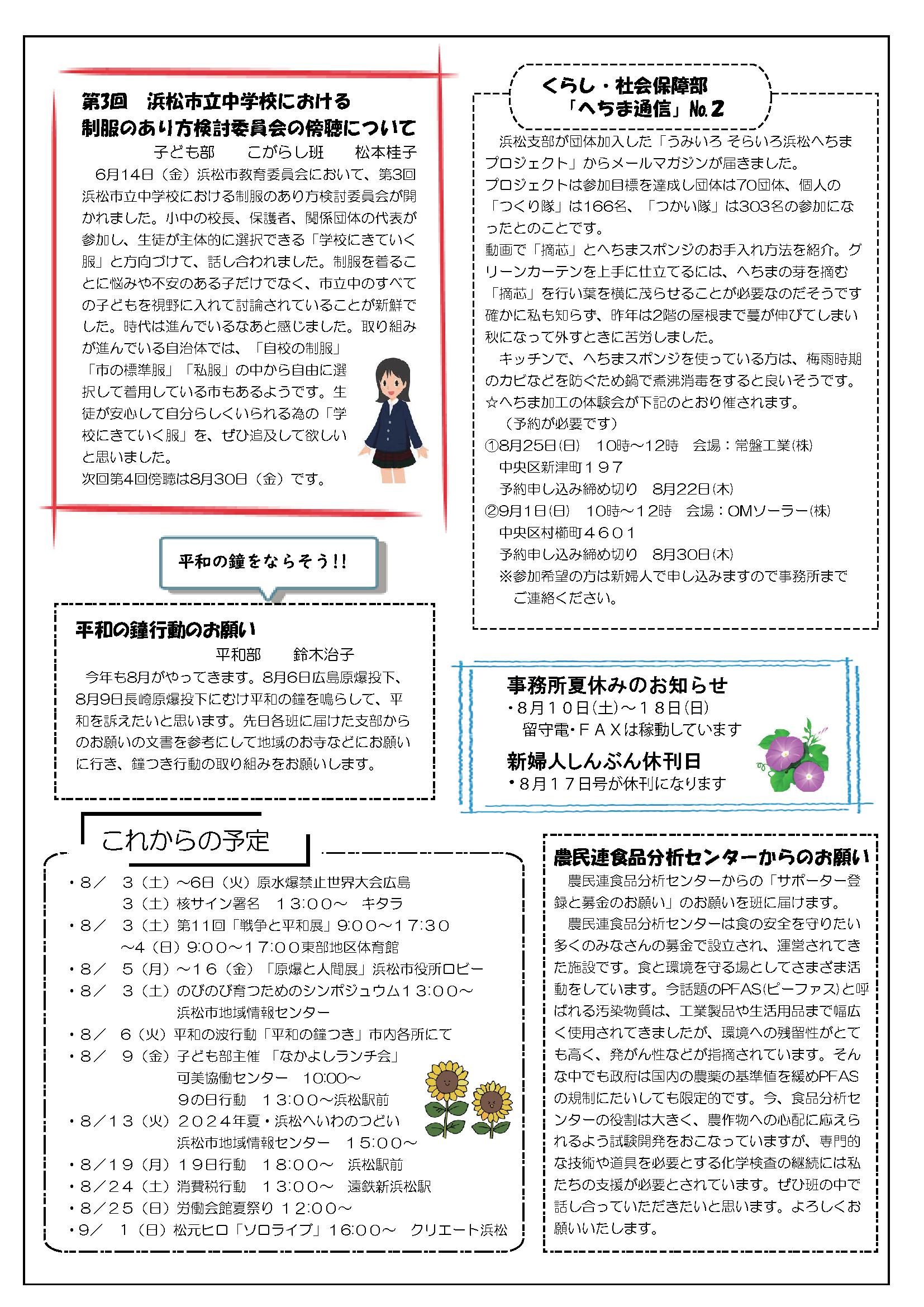 草の根運動でくらしを変えよう 新日本婦人の会浜松支部機関紙