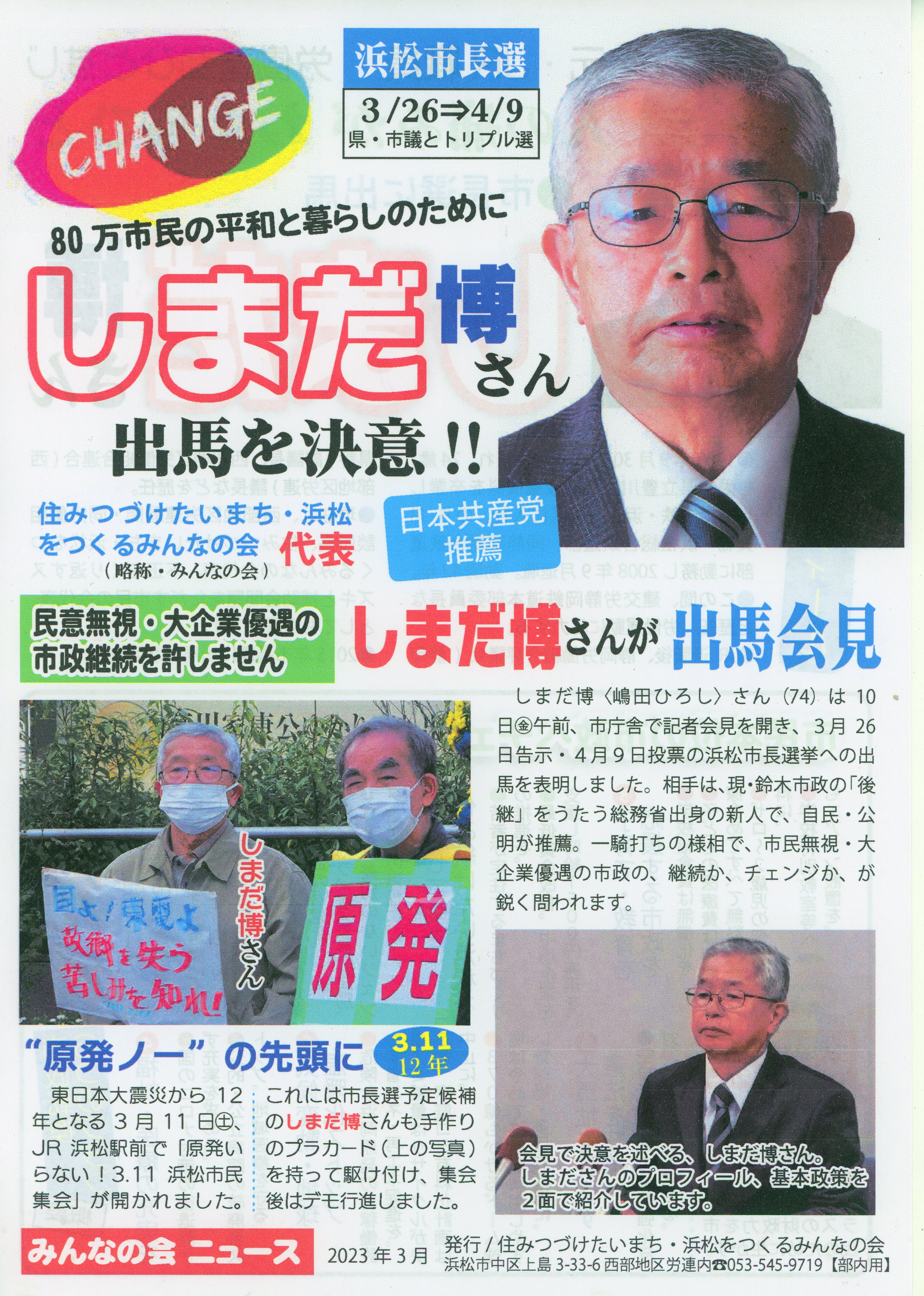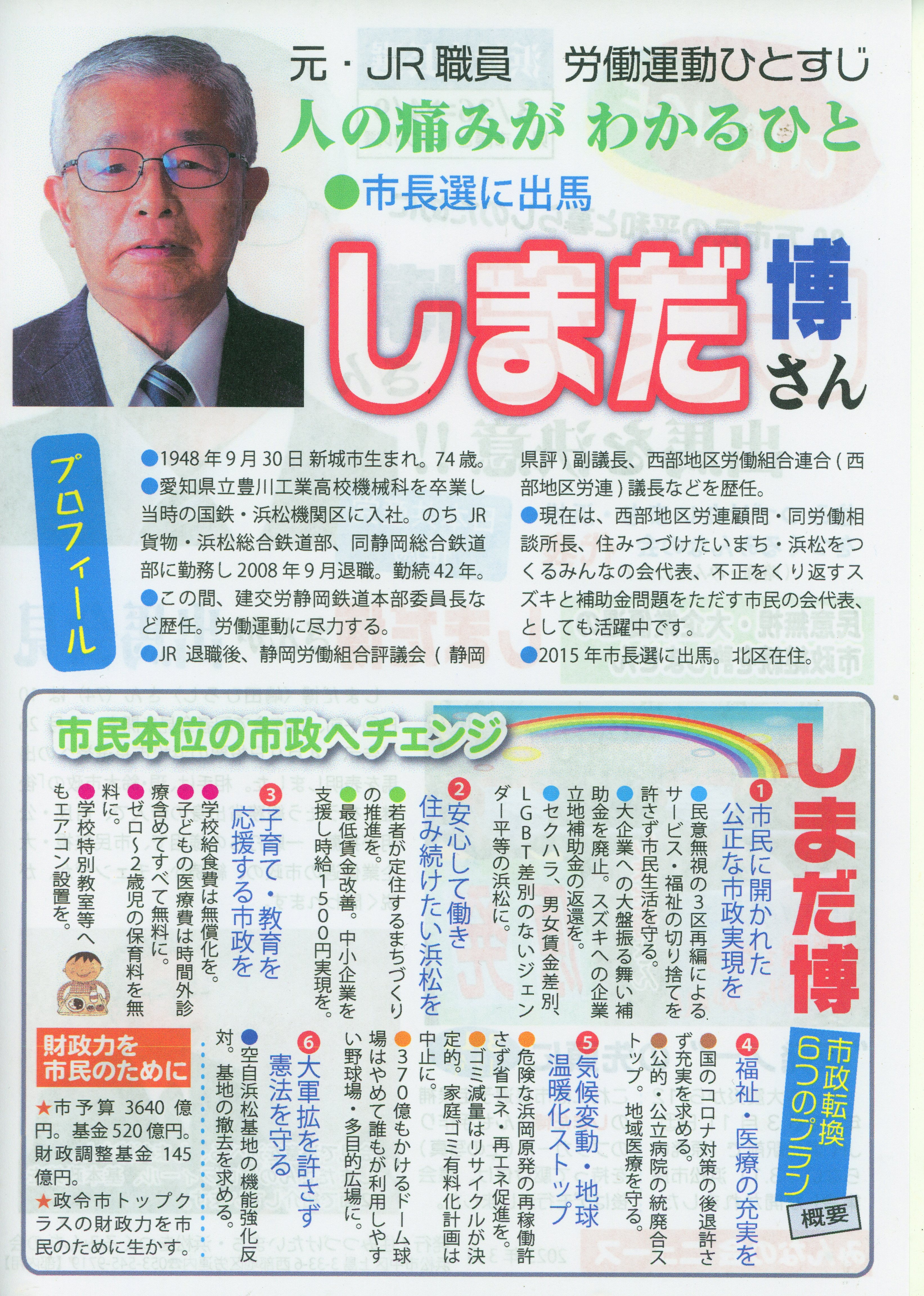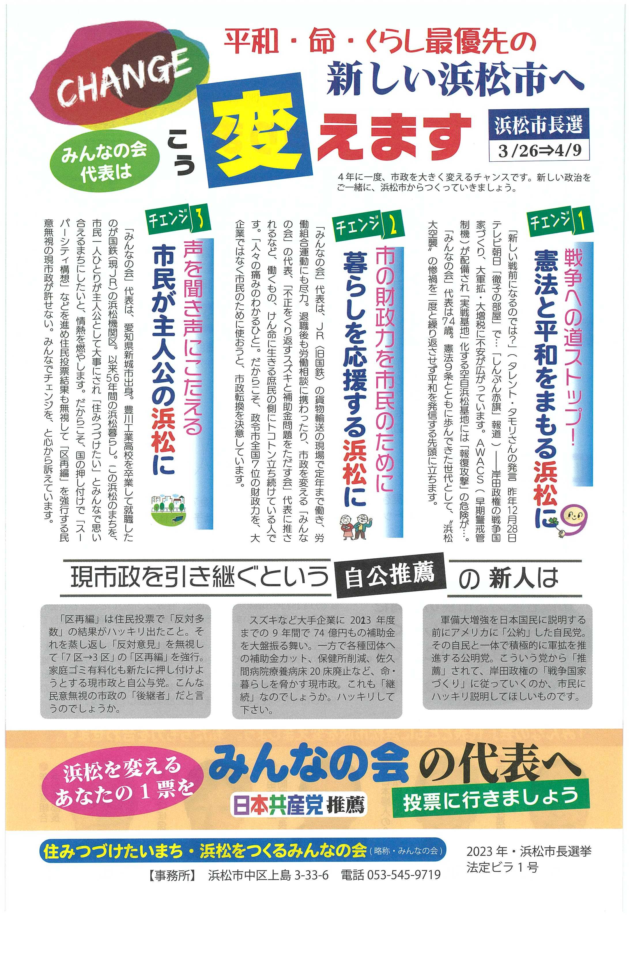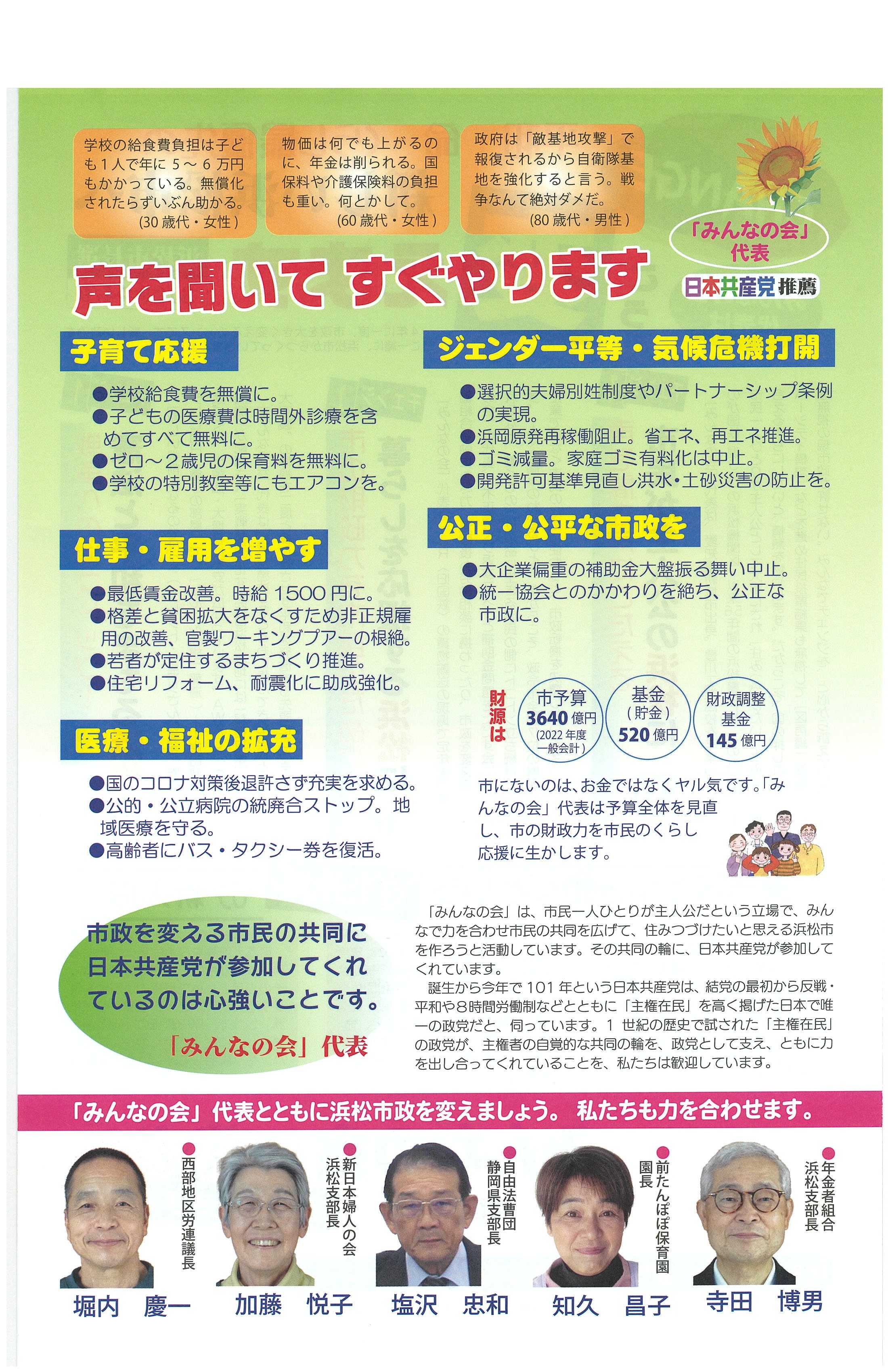 平和・命・くらし優先の新しい浜松市へ変えます