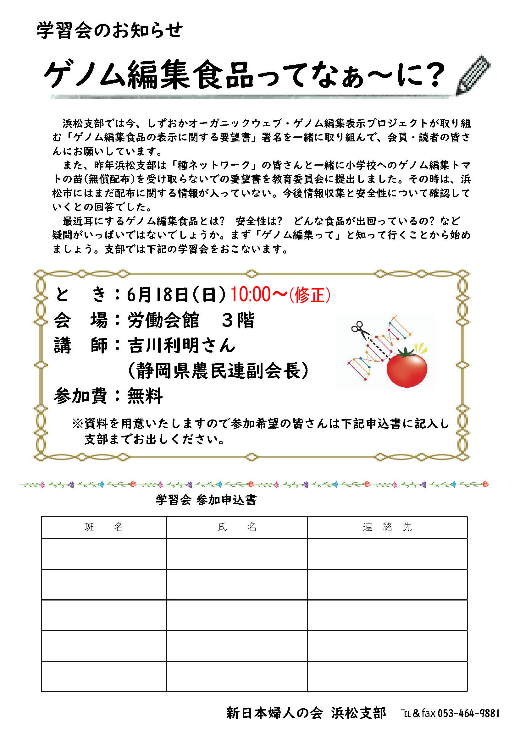 ゲノム編集食品ってなあに? 新日本婦人の会浜松支部