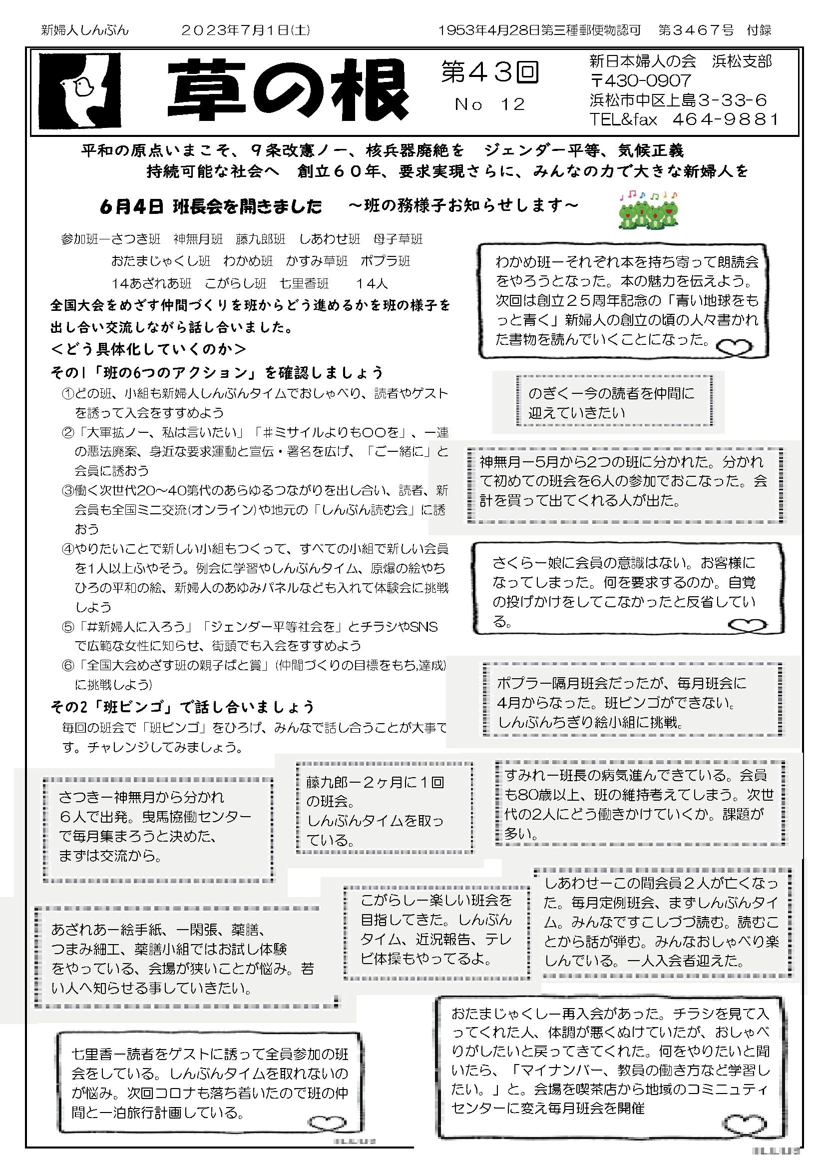 07月01日(土) 草の根 No12発行