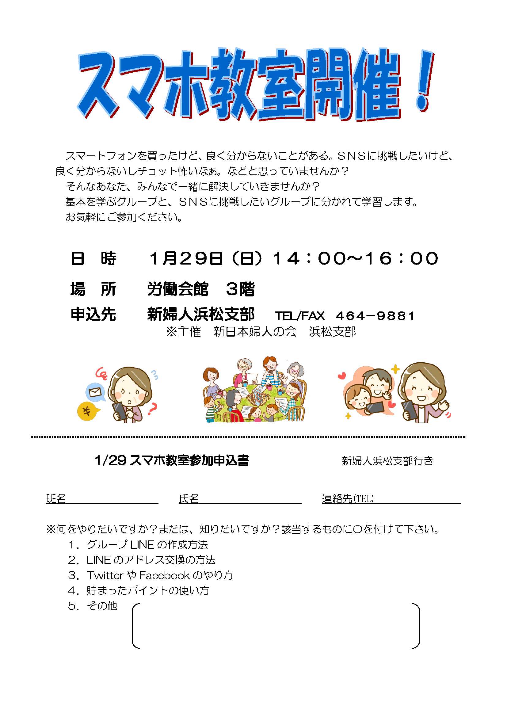 スマホ教室開催 新日本婦人の会浜松支部主催