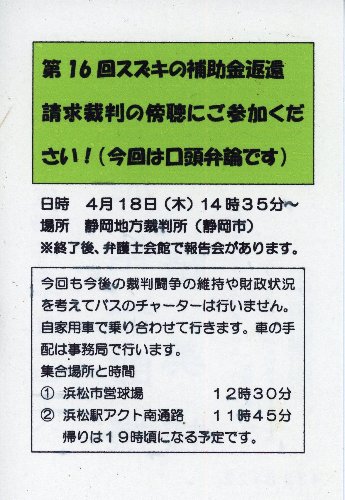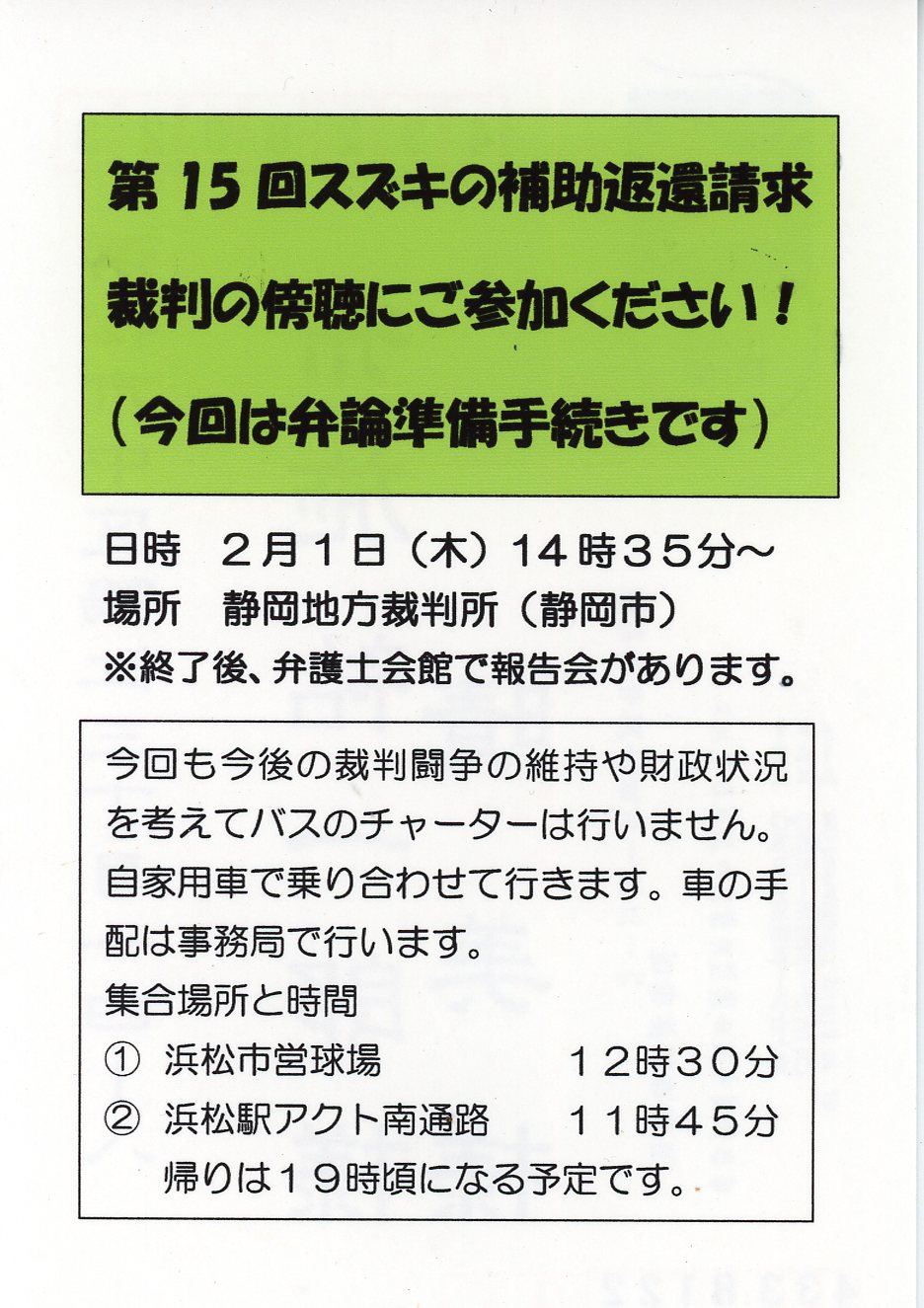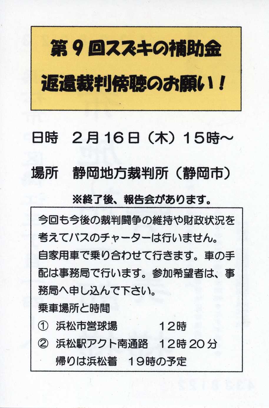 第9回スズキの補助金返還裁判膨張のお願い スズキの不正と補助金問題を正す市民の会